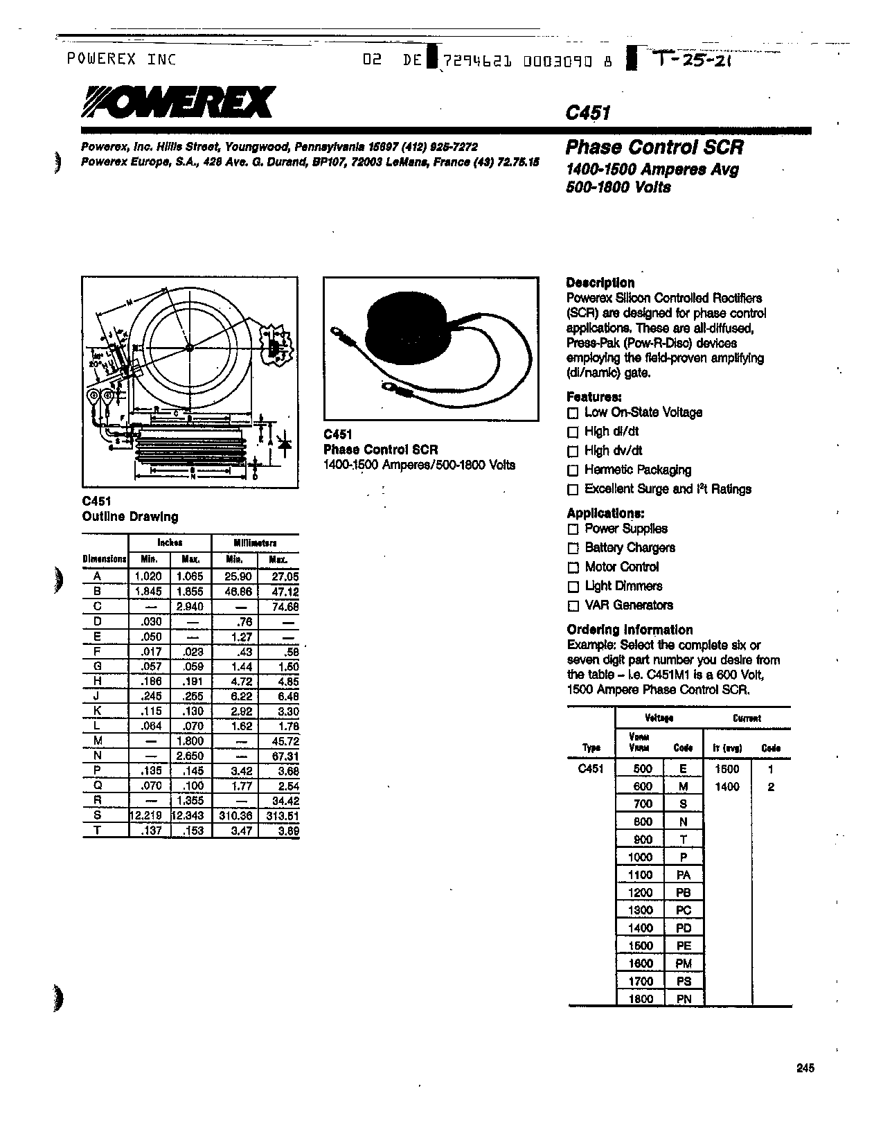 Phase Control SCR 1400-1500 Amperes Avg 500-1800 Volts