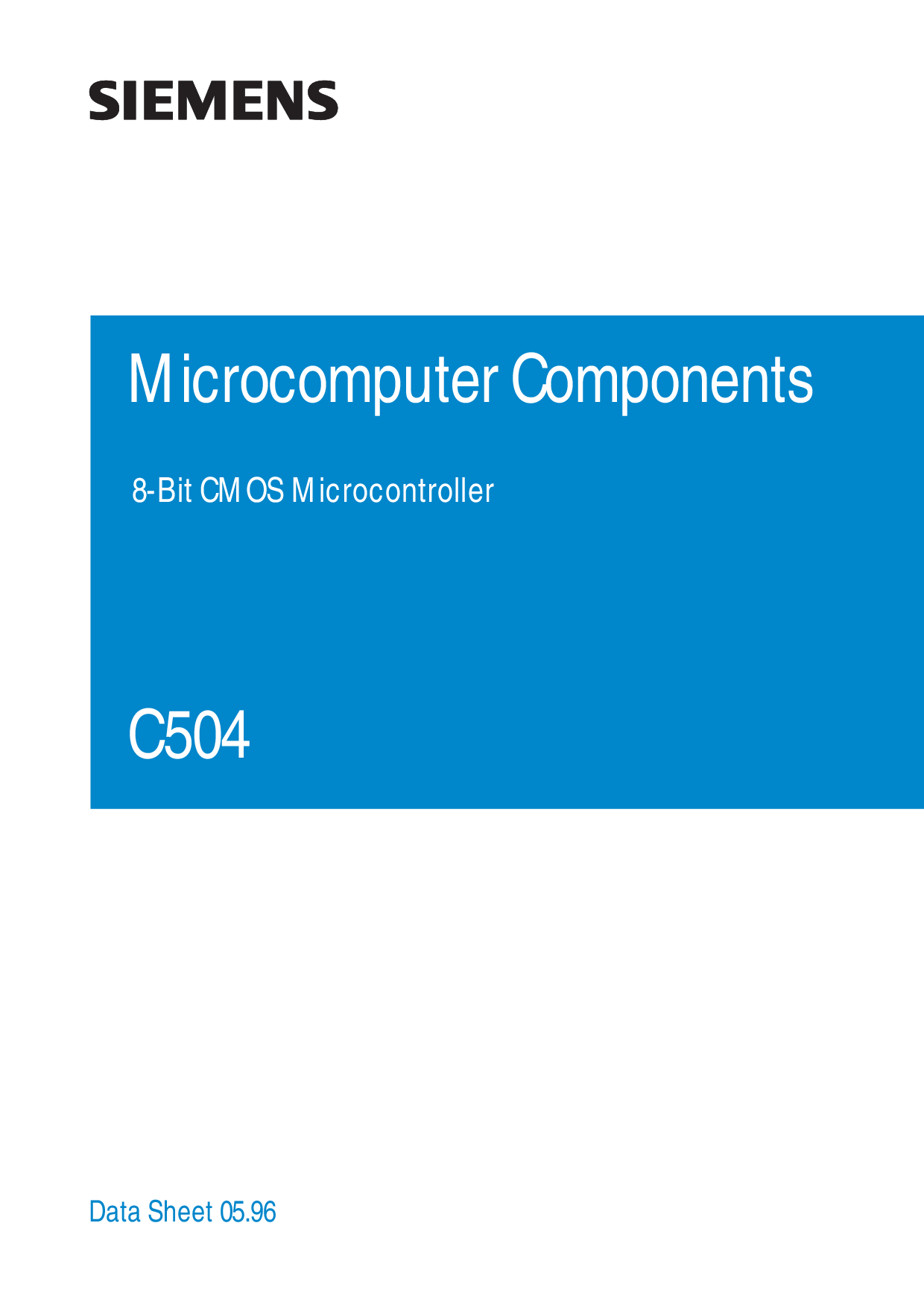 数据 工作表 05.96 Microcompu之三 组件s C504 8-有点 cmos 微控制器 | |