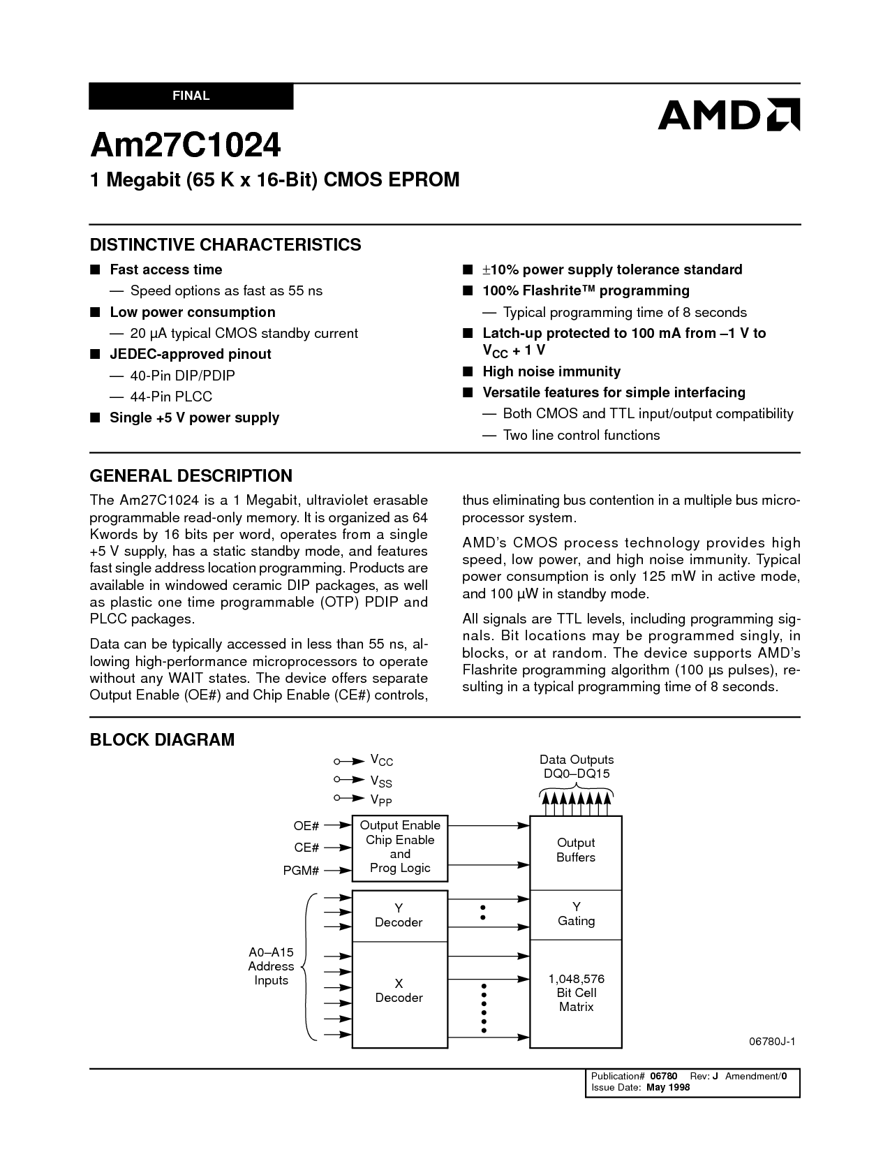 这 am27c1024 是 一个 1 兆位, 紫外线 可擦除