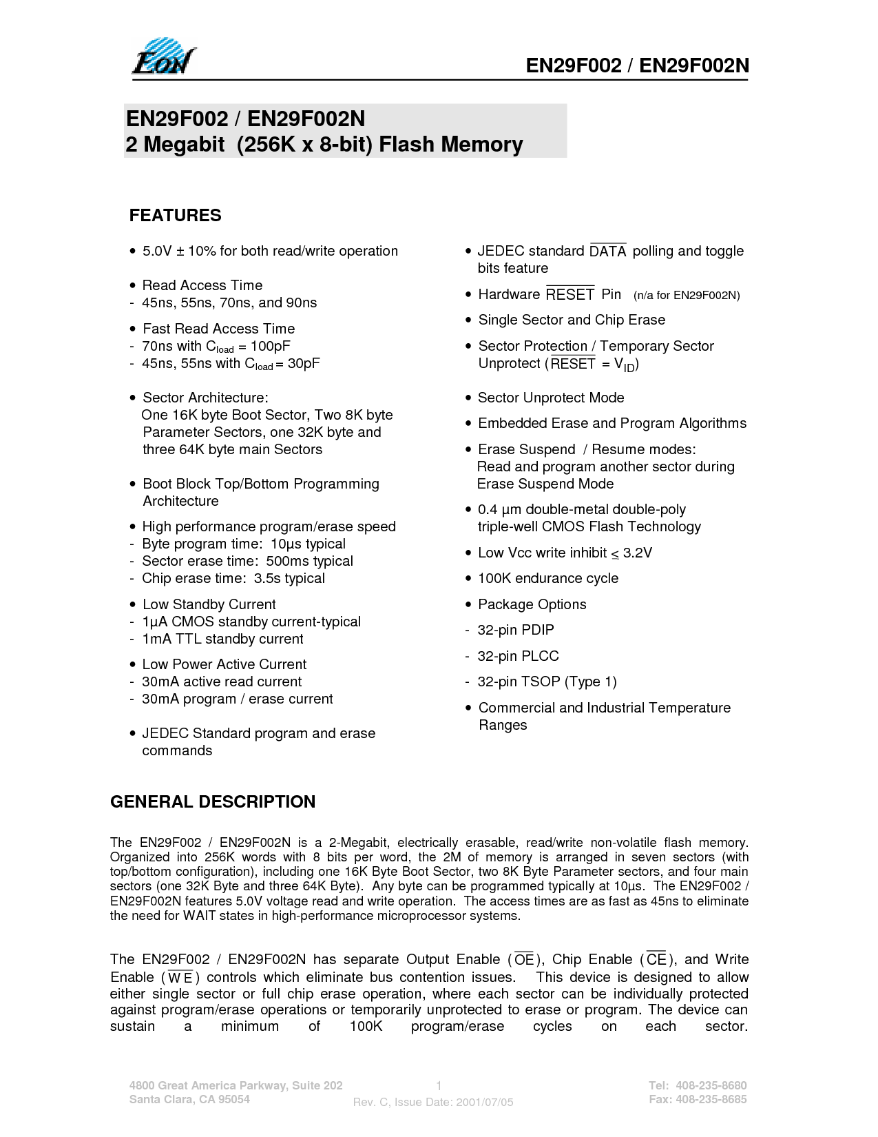 浏览型号EN29F002B-90J的Datasheet PDF文件第2页