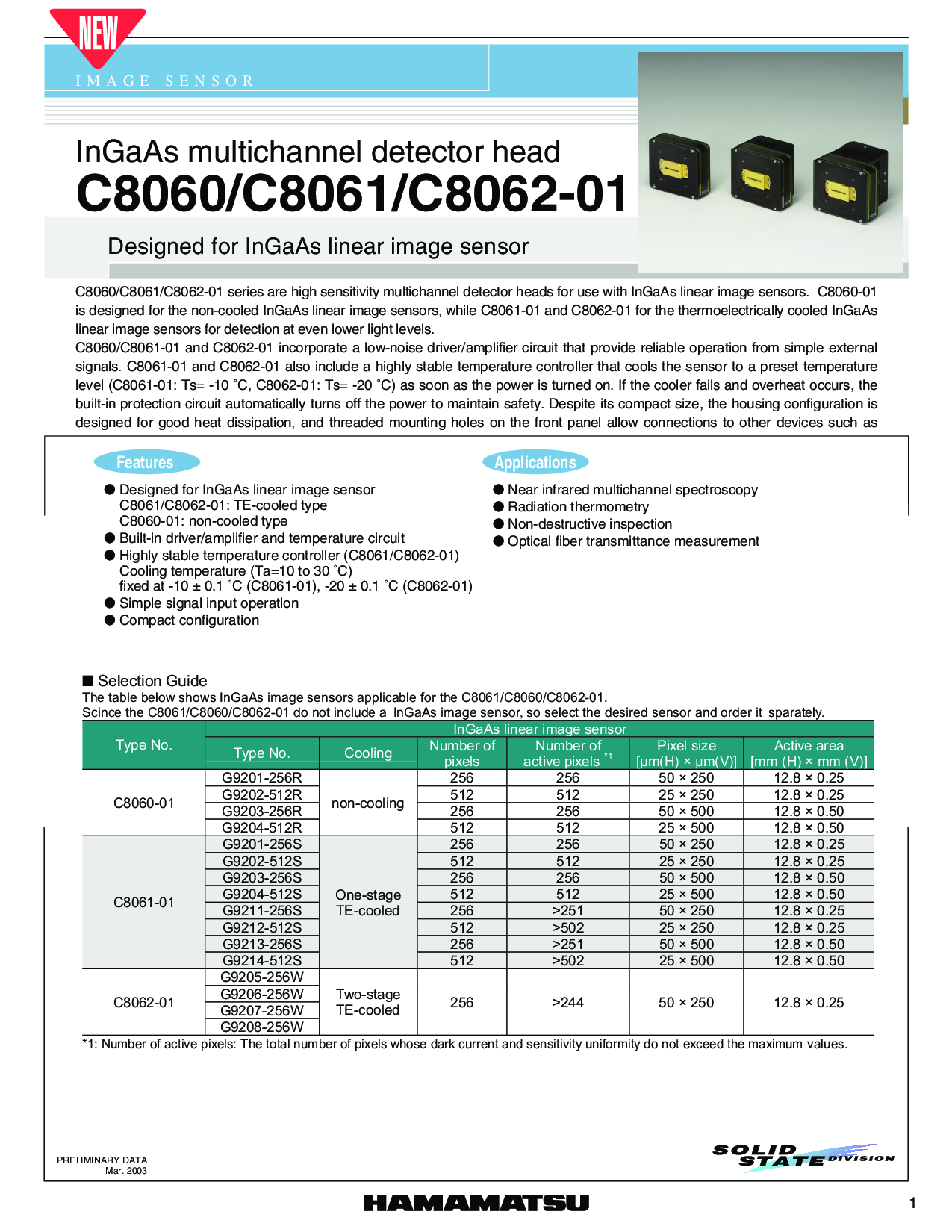 c8060/c8061/c8062-01 系列 是 高 灵敏度 多通道 检测器 头 用于 使用 与 ingaas 线性 图像 传感器. c8060-01