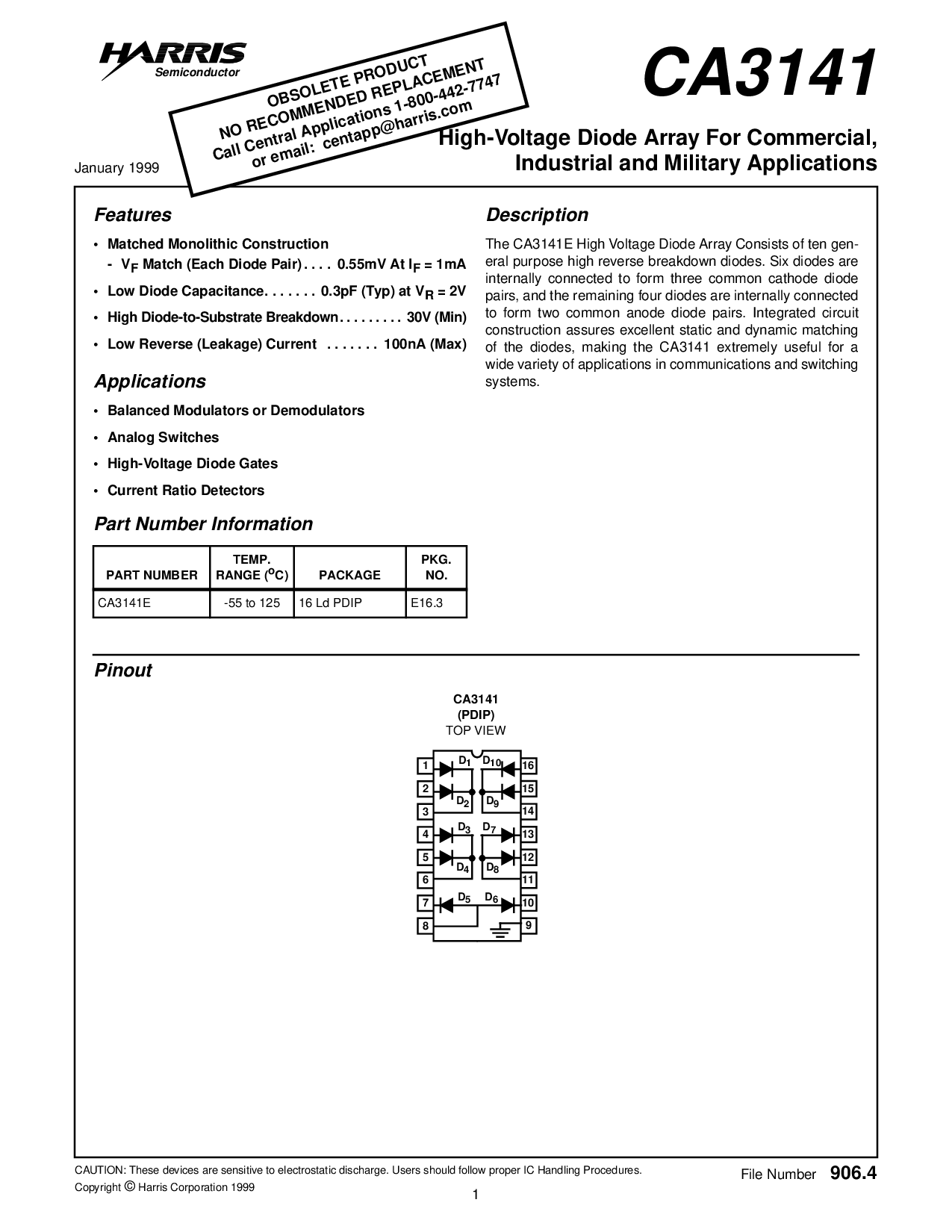 CA3141E -55 至 125 16 ld pdip e16.3