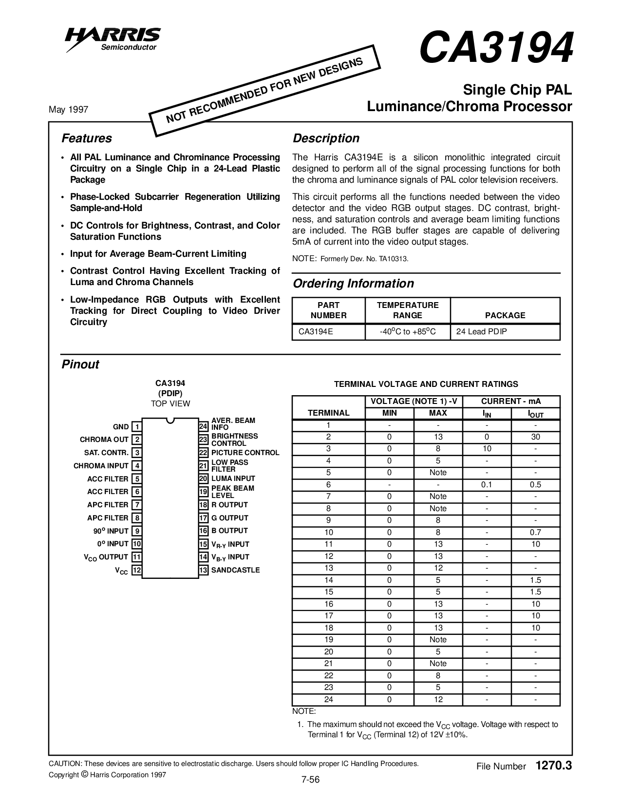 这 harris ca3194e 是 一个 硅 单片 综合 电路