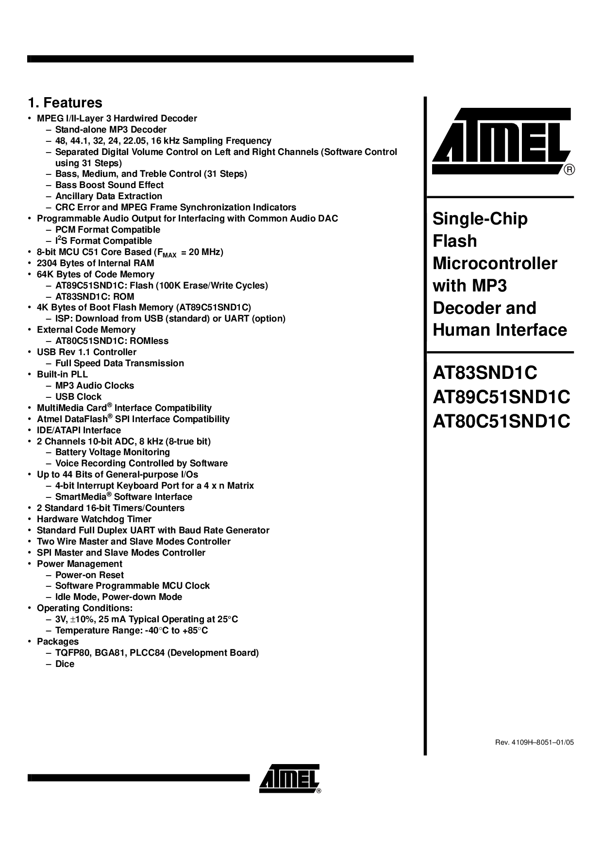 – at89c51snd1c: 闪光灯 (100k 擦除/写 循环次数)