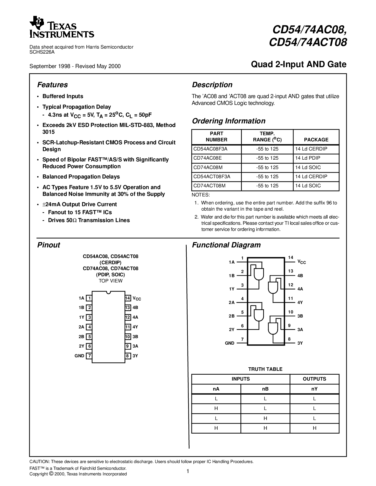 这 ’AC08 和 ’ACT08 是 四边形 2-输入 和 盖茨 那 利用
