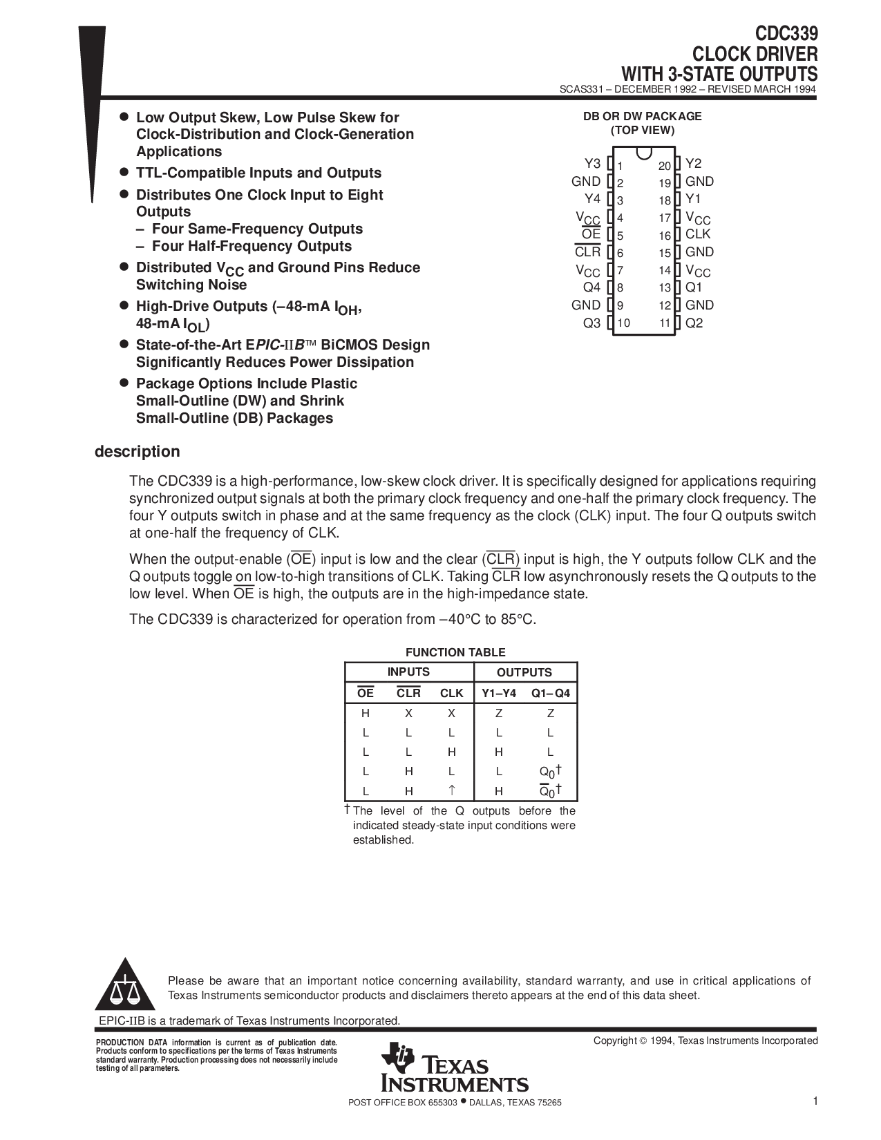 这 cdc339 是 一个 高-业绩, 低偏斜 时钟 驾驶员. 它 是 具体而言 设计 用于 应用程序 要求