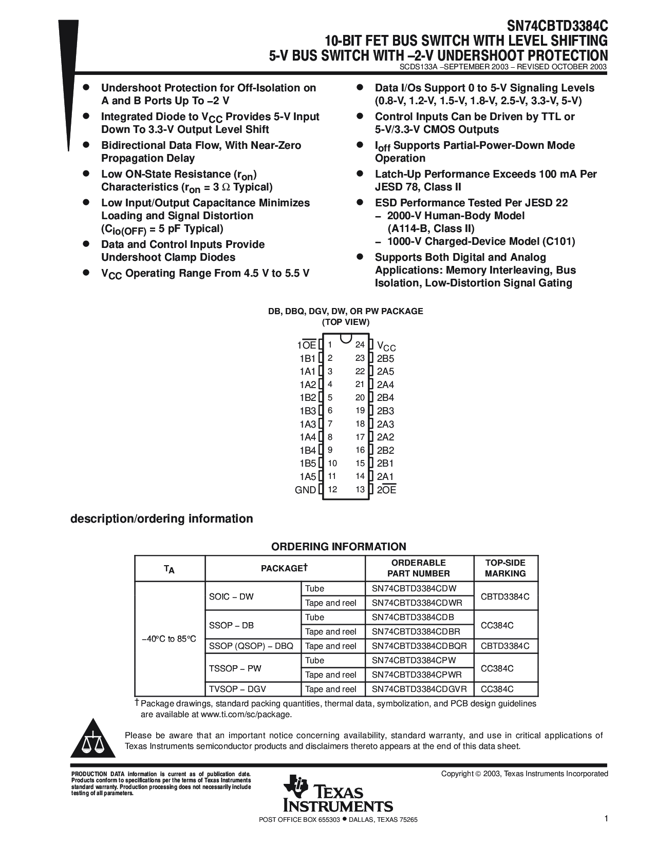 ssop (qsop) − dbq 胶带 和 卷轴 SN74CBTD3384CDBQR CBTD3384C