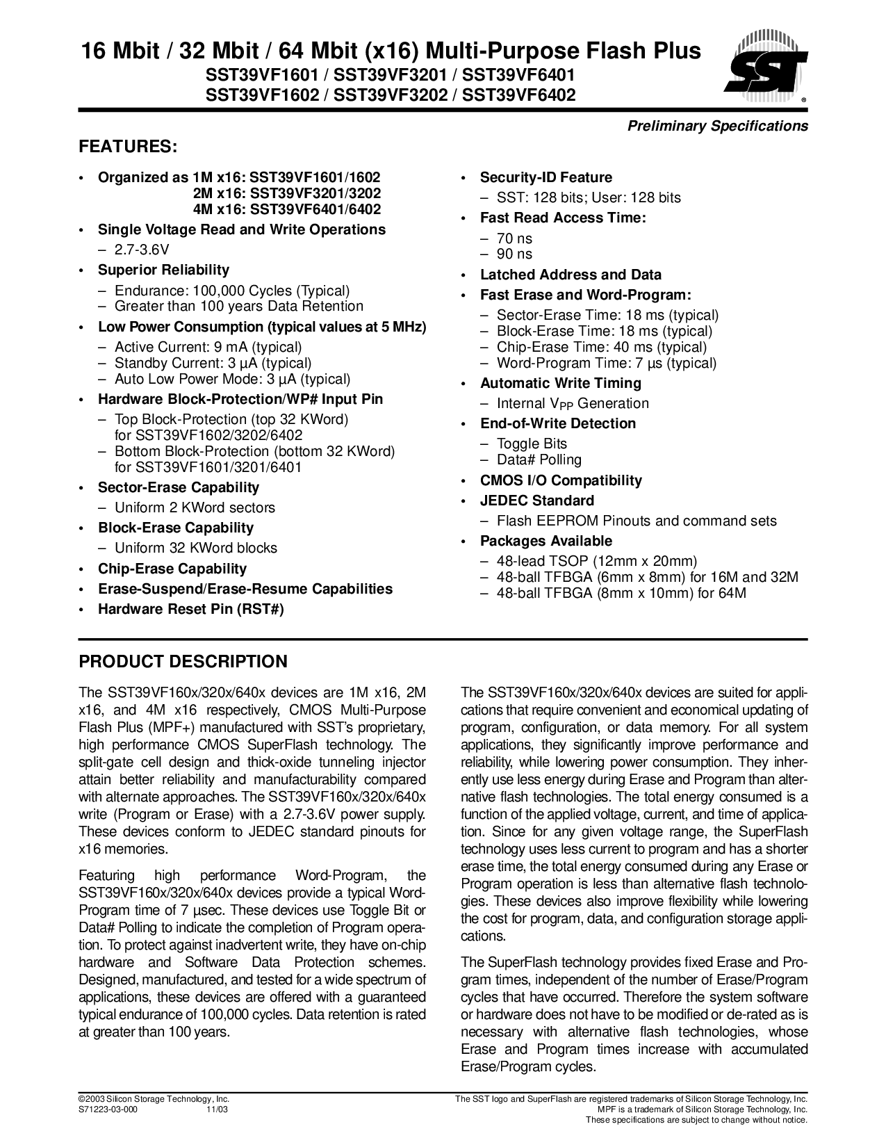 sst39vf1601 / sst39vf3201 / sst39vf6401