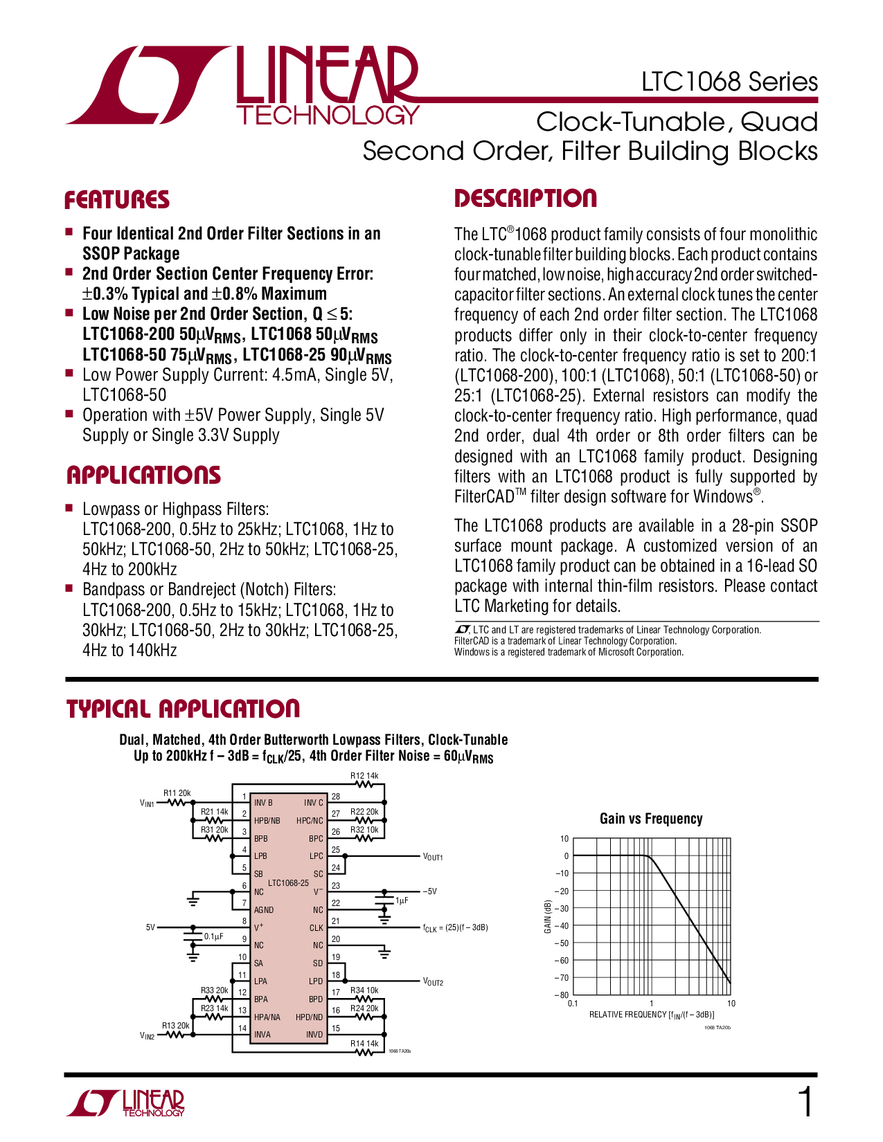 ltc1068-200, 0.5hz 至 25khz; ltc1068, 1hz 至