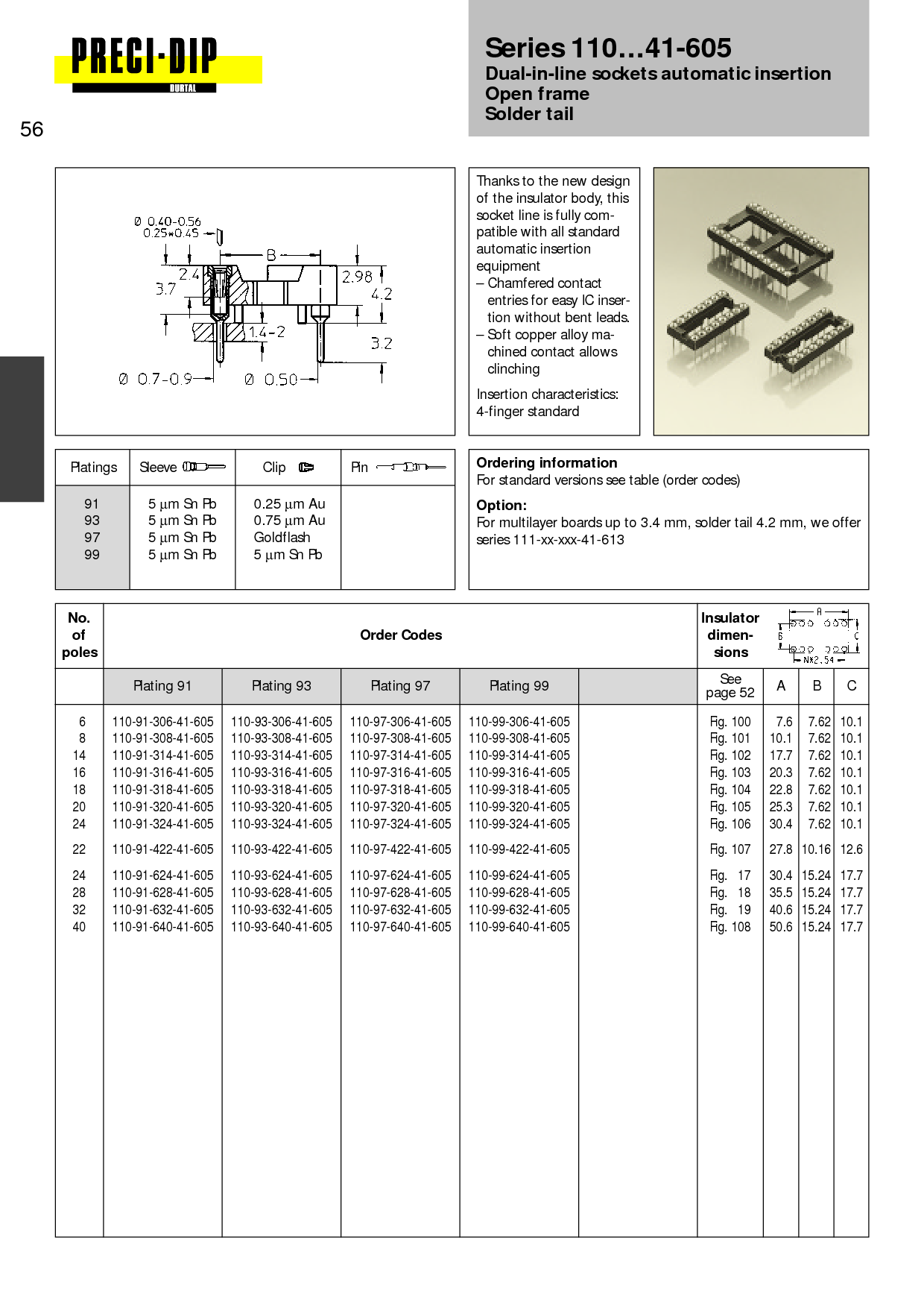 Dual-in-line sockets automatic insertion Open frame Solder tail