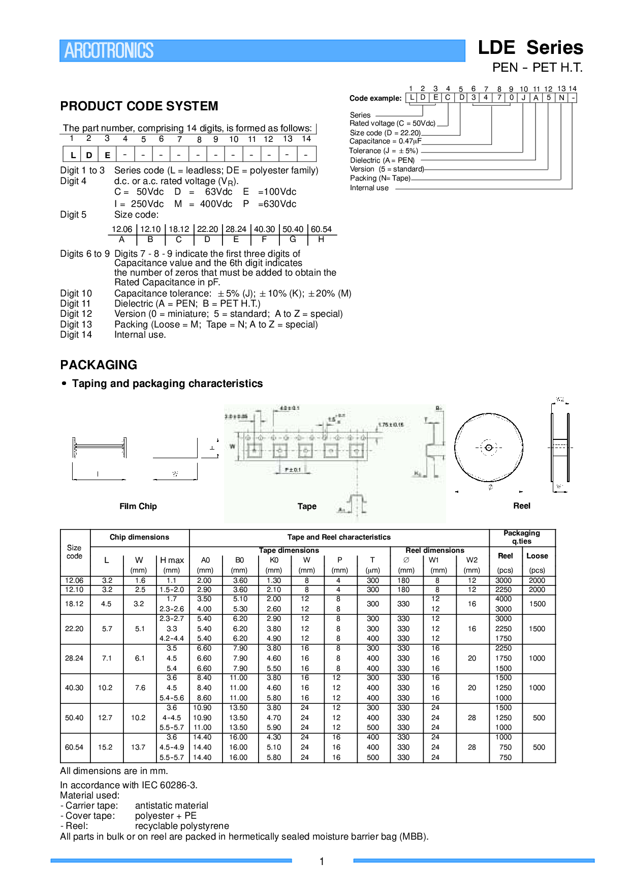 数字 1 至 3 系列 代码 (l = 无铅; de = polyester 家庭)