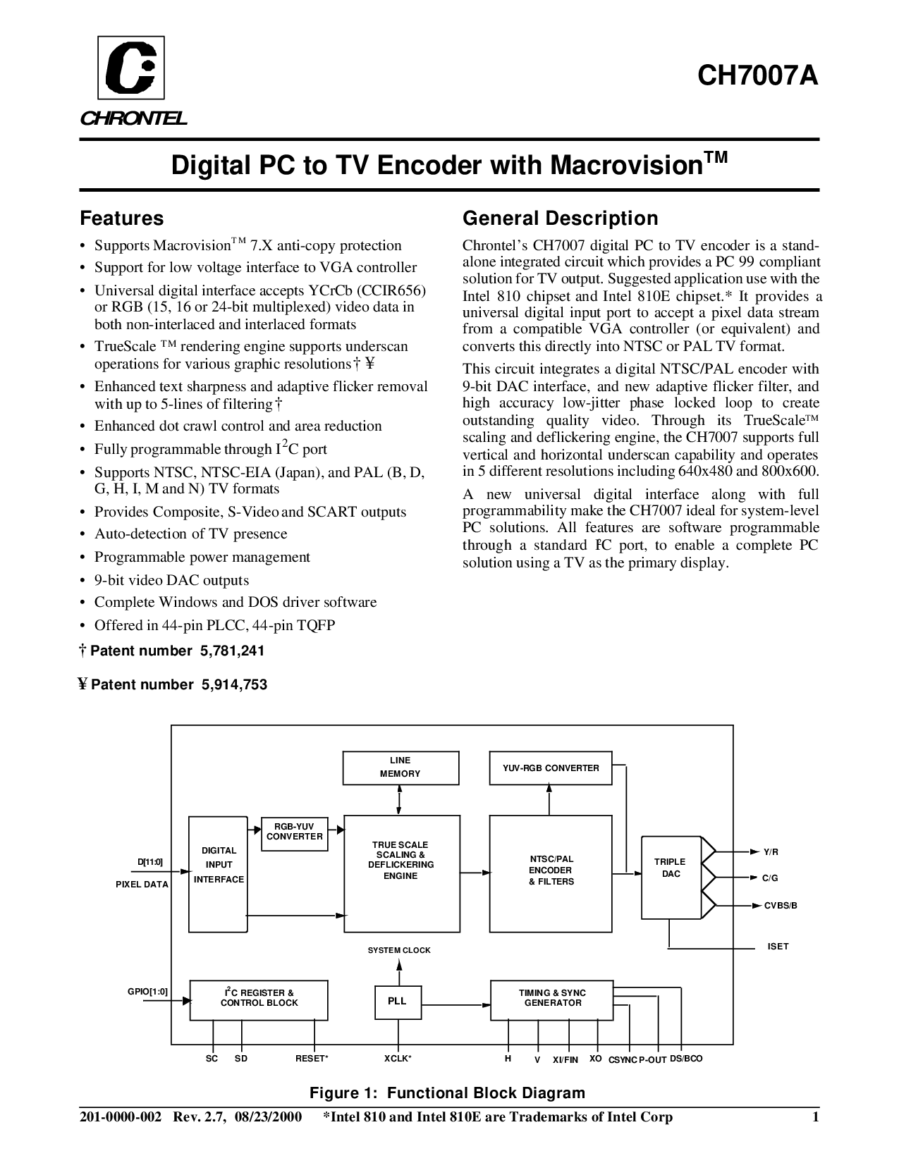 chrontel’s ch7007 数字 pc 至 tv 编码器 是 一个 站台-