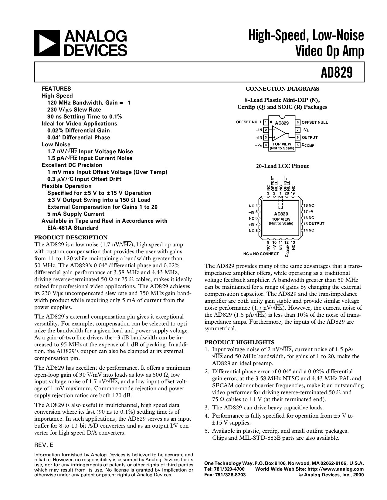 传真: 781/326-8703 © 模拟 设备, 股份有限公司., 2000