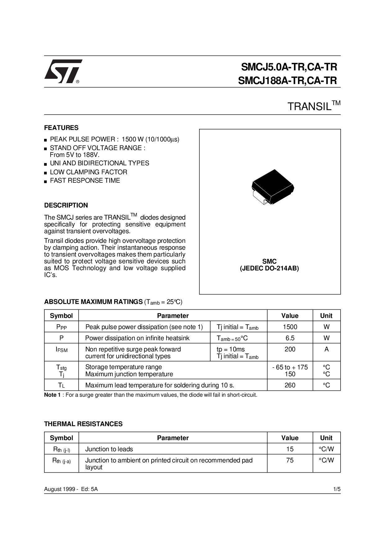 浏览型号SMCJ26A-TR的Datasheet PDF文件第5页