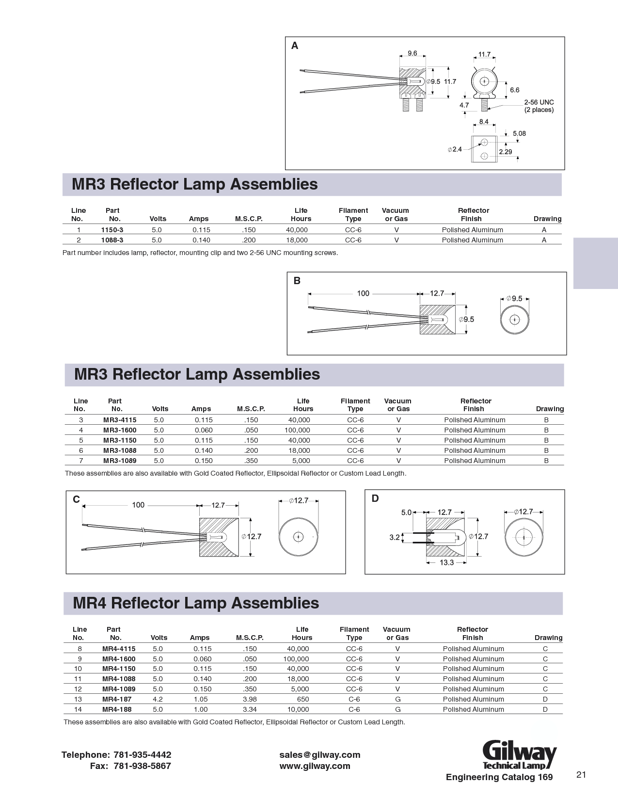 零件 号码 包括 灯, reflector, 安装 夹子 和 两个 2-56 unc 安装 螺钉.