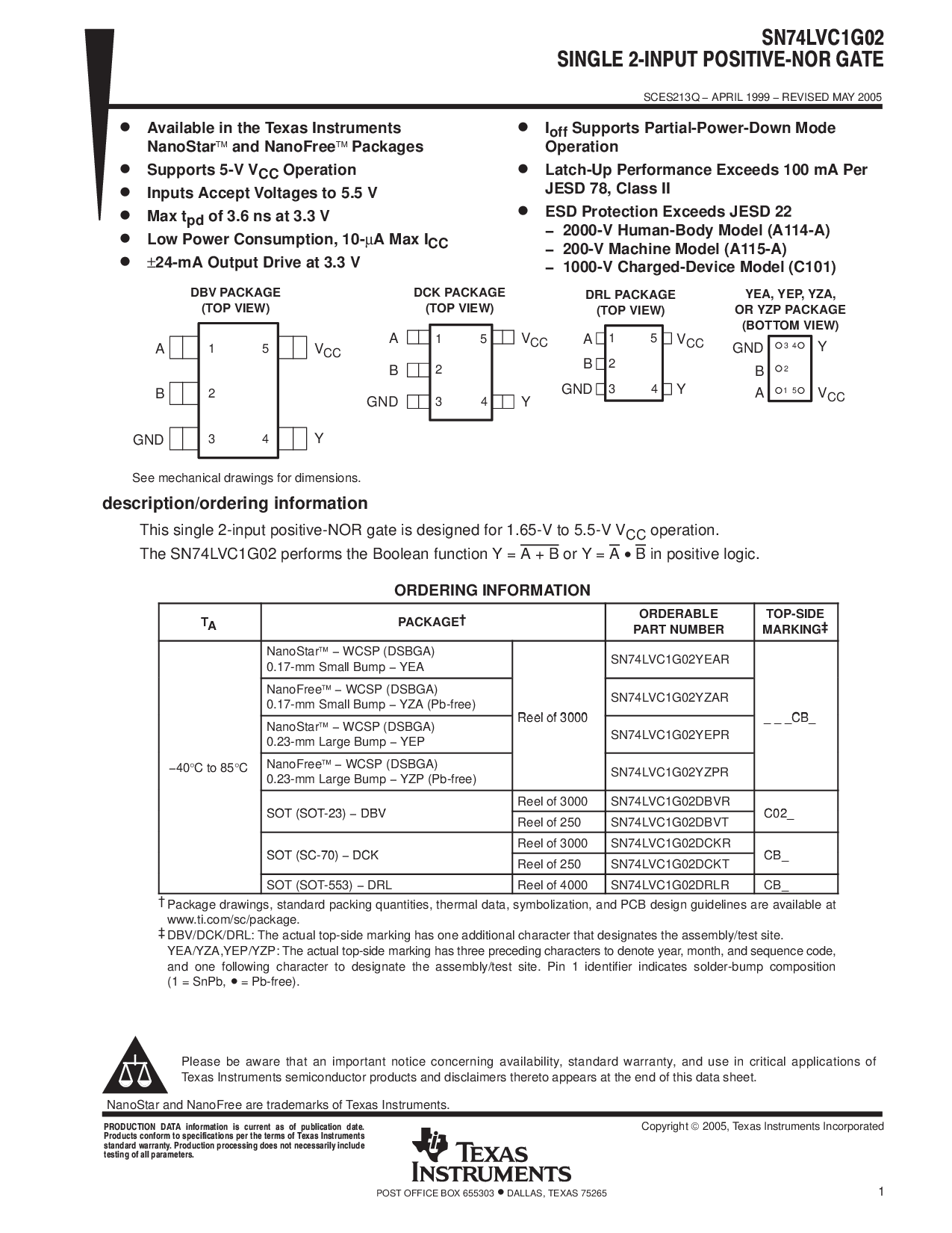 浏览型号SN74LVC1G02DCKTE4的Datasheet PDF文件第2页