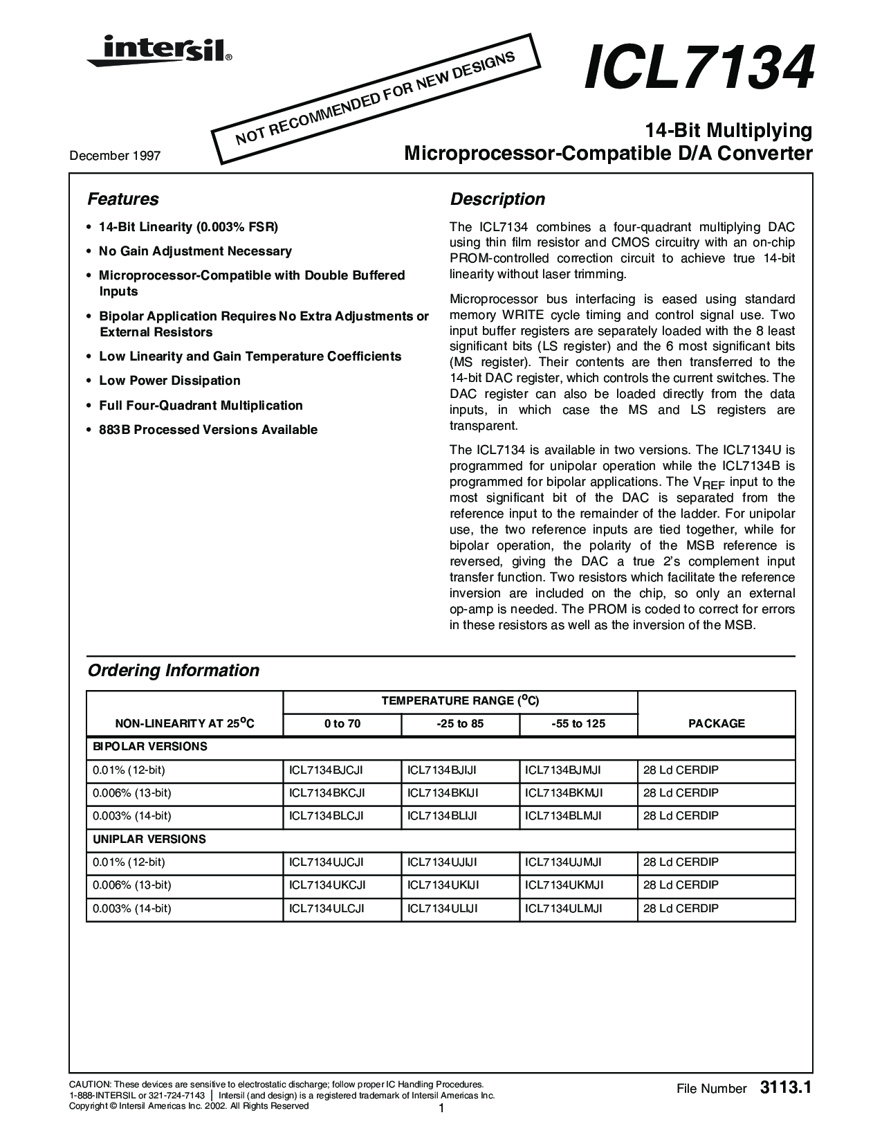 0.003% (14-有点) ICL7134BLCJI ICL7134BLIJI ICL7134BLMJI 28 ld cerdip