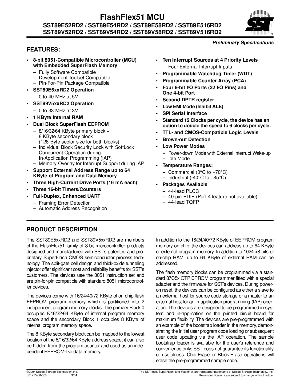 sst89e52rd2 / sst89e54rd2 / sst89e58rd2 / sst89e516rd2
