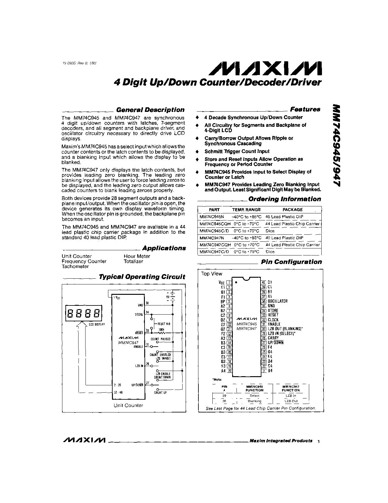 4 Digit Up/Down Counter/Decoder/Driver