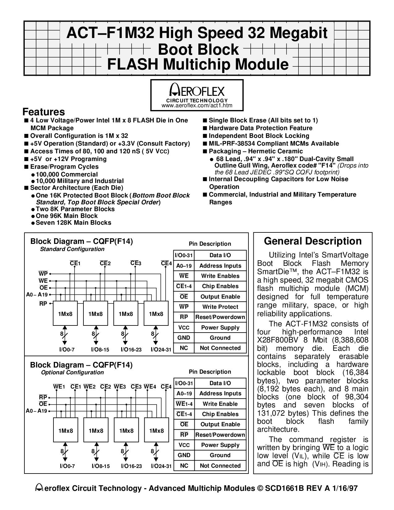 ACT-F1M32 High Speed 32 Megabit Boot Block FLASH Multichip Module