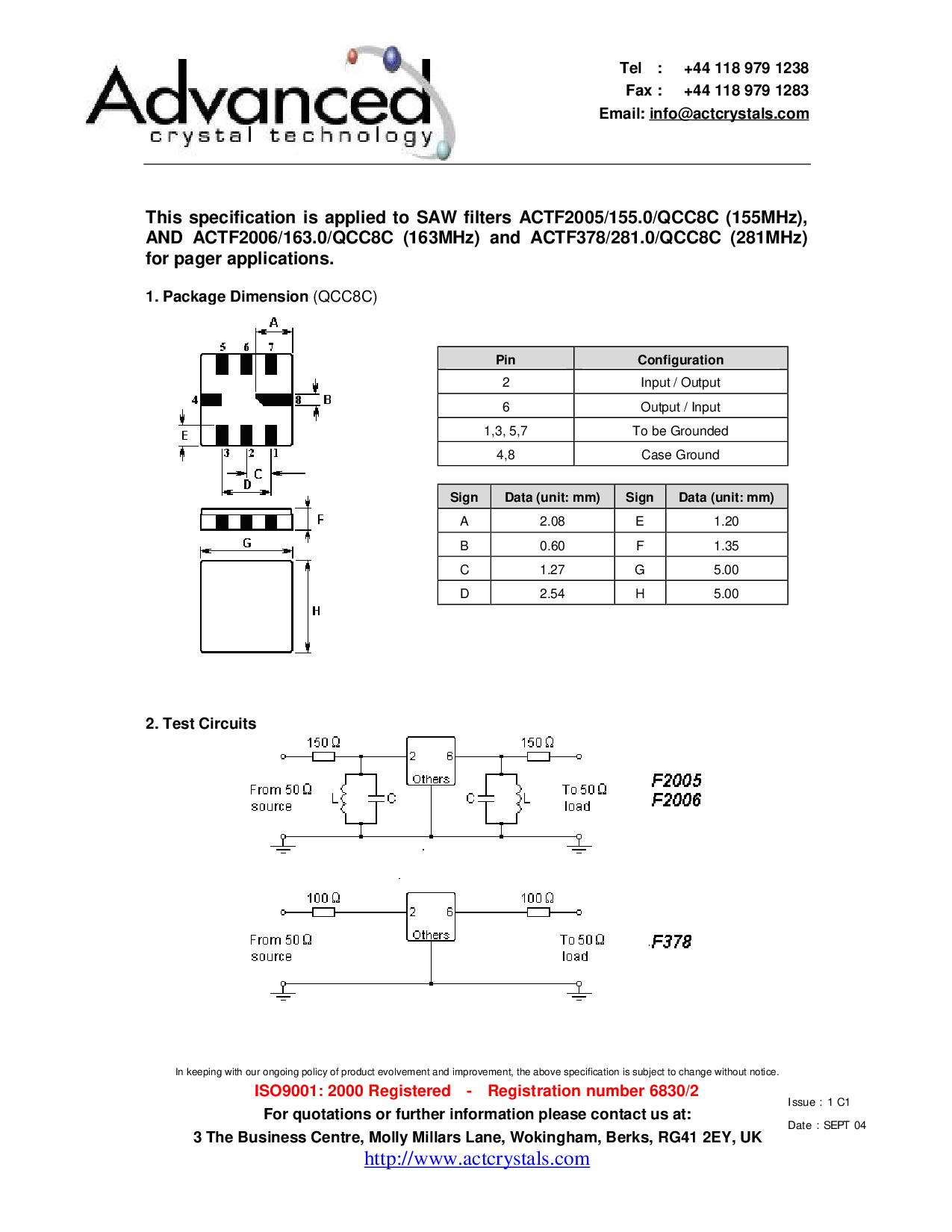 一个钕一个CTF2006/163.0/QCc8C(163mhz)和一个ctf378/281.0/qcC8c(281mhz)