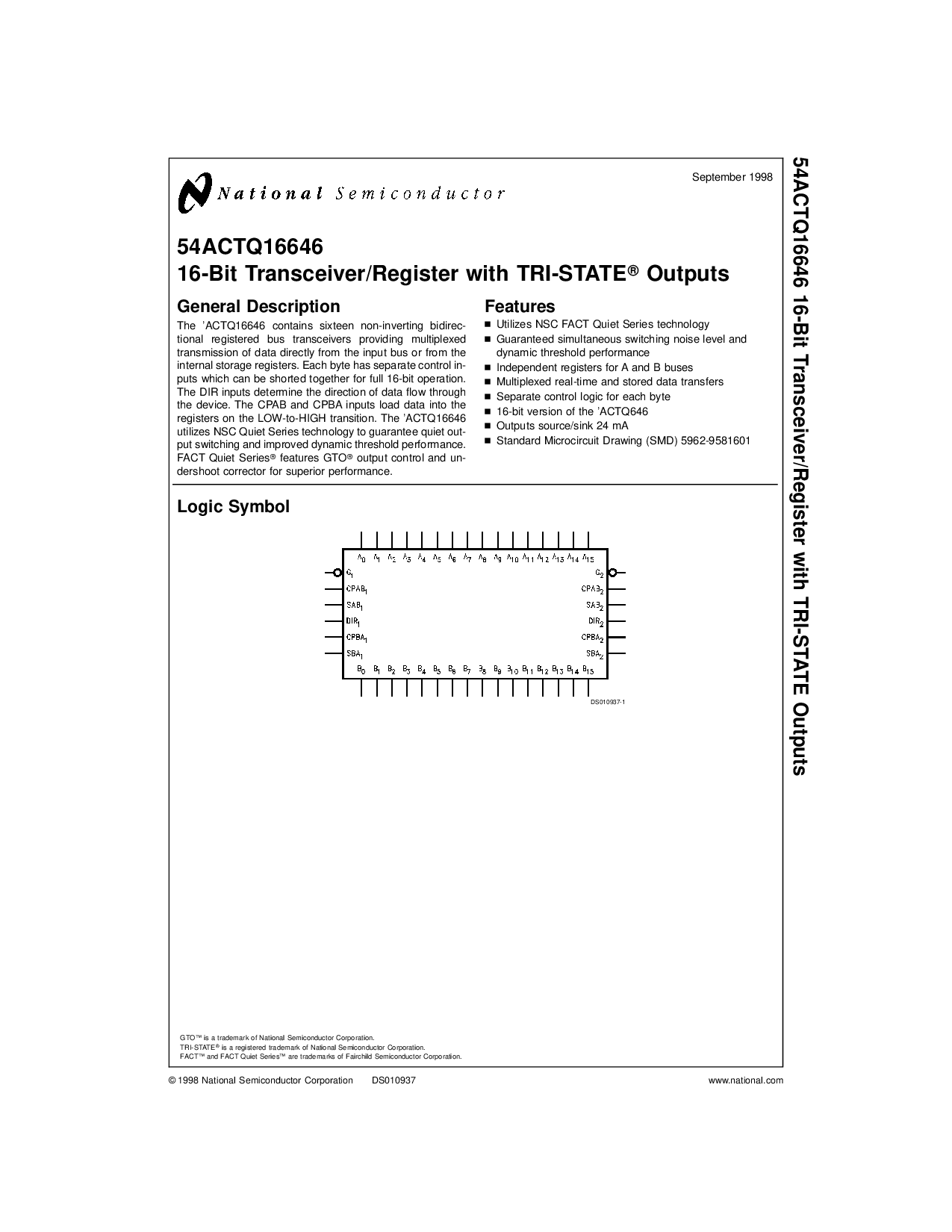 54ACTQ16646 16-有点 收发器/注册 与 三态 产出
