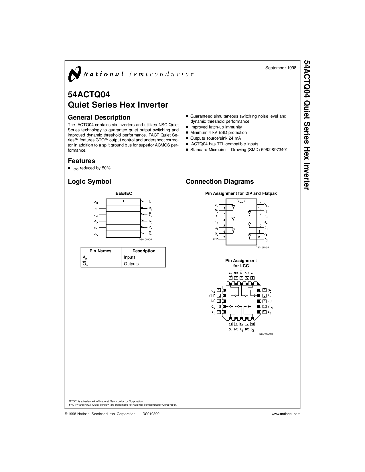 这 ’ACTQ04 包含 六个 逆变器 和 利用 nsc 安静