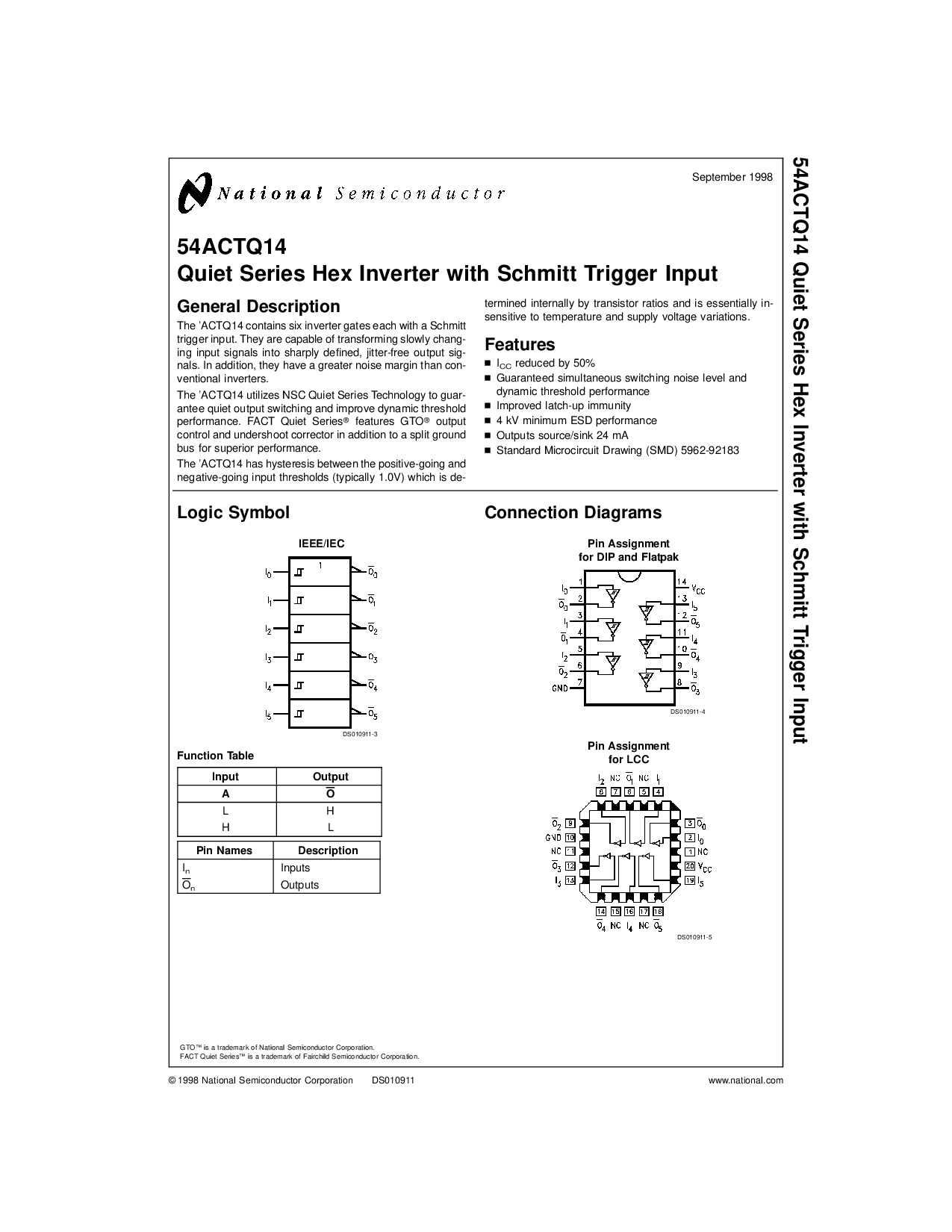 54ACTQ14 安静 系列 十六进制 逆变器 施密特 触发器 输入