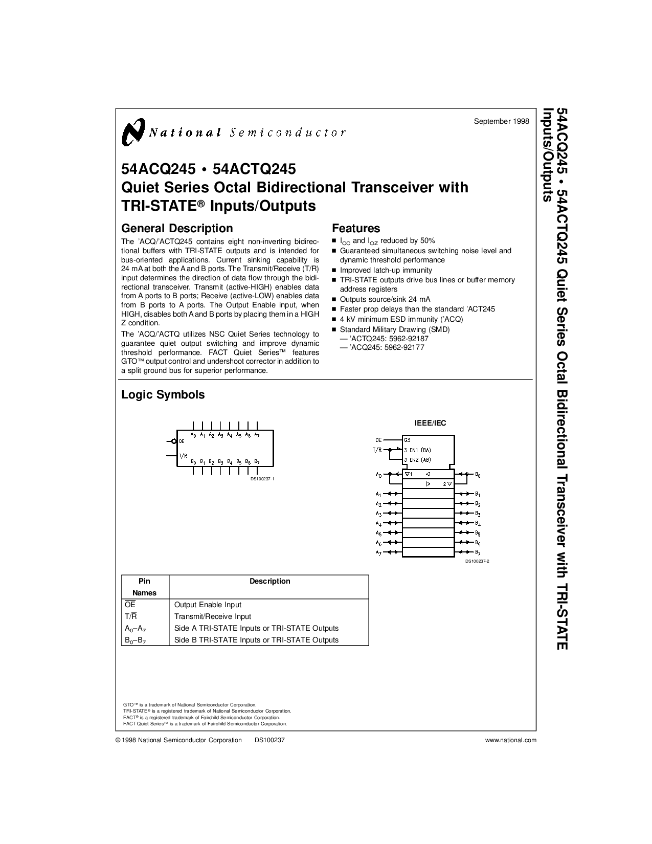 54ACTQ245 安静 系列 八进制 双向 收发器 三态