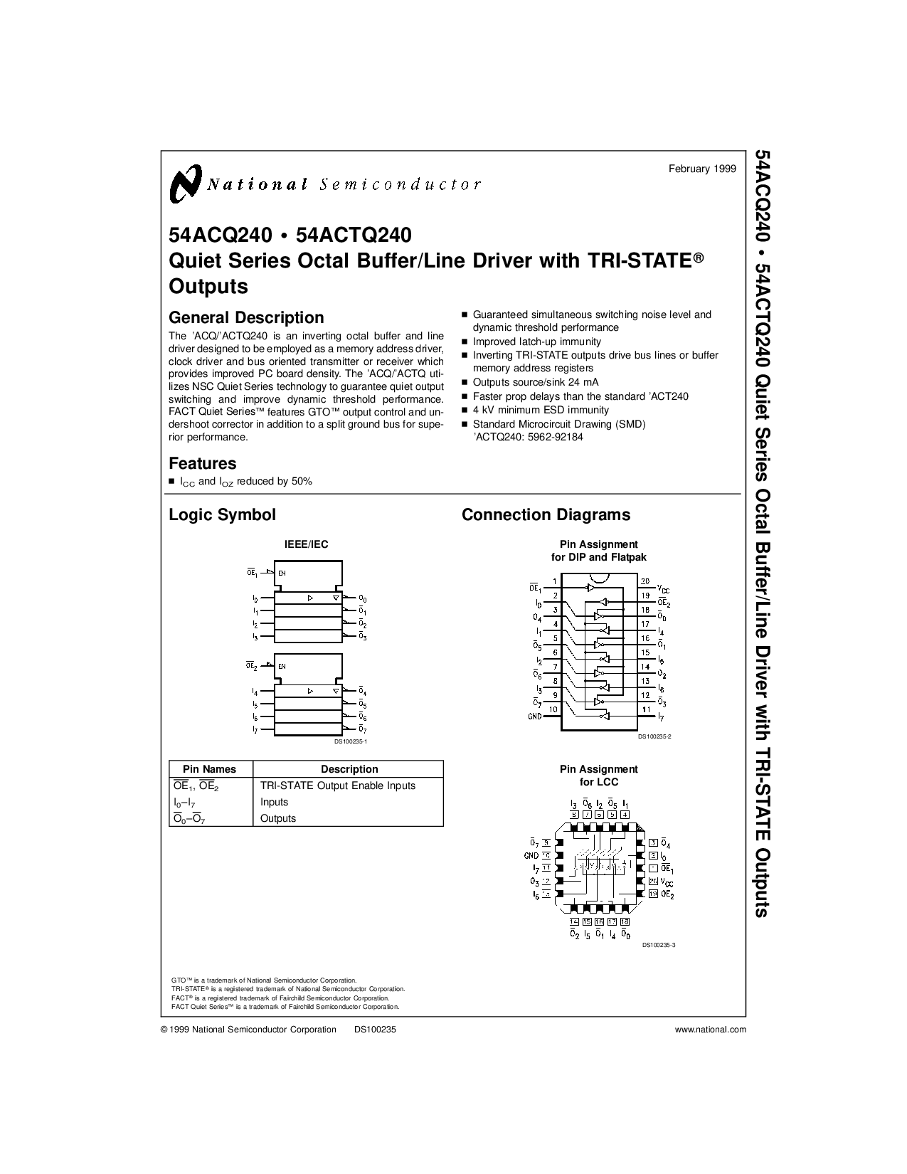 54ACTQ240 安静 系列 八进制 缓冲区/线 驾驶员 三态 产出