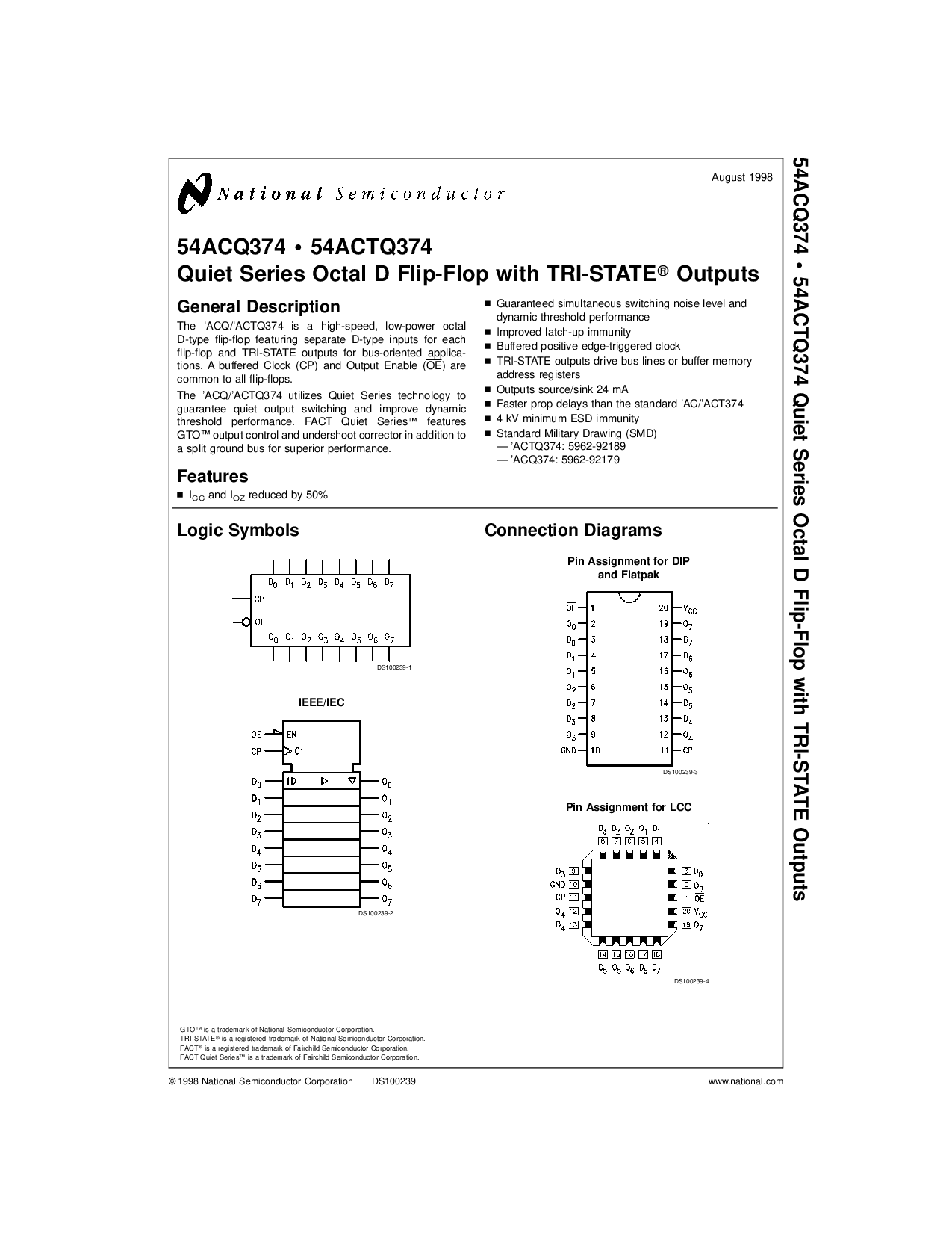 54ACTQ374 安静 系列 八进制 d 触发器 三态 产出