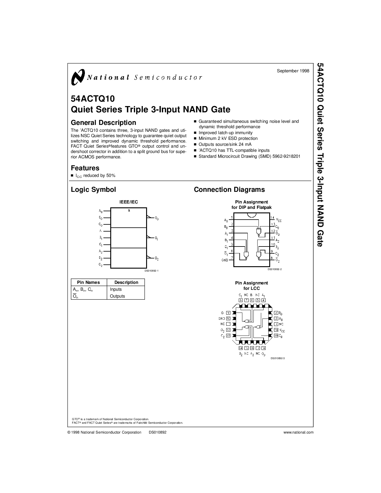 54ACTQ10 安静 系列 三倍 3-输入 与非 闸门