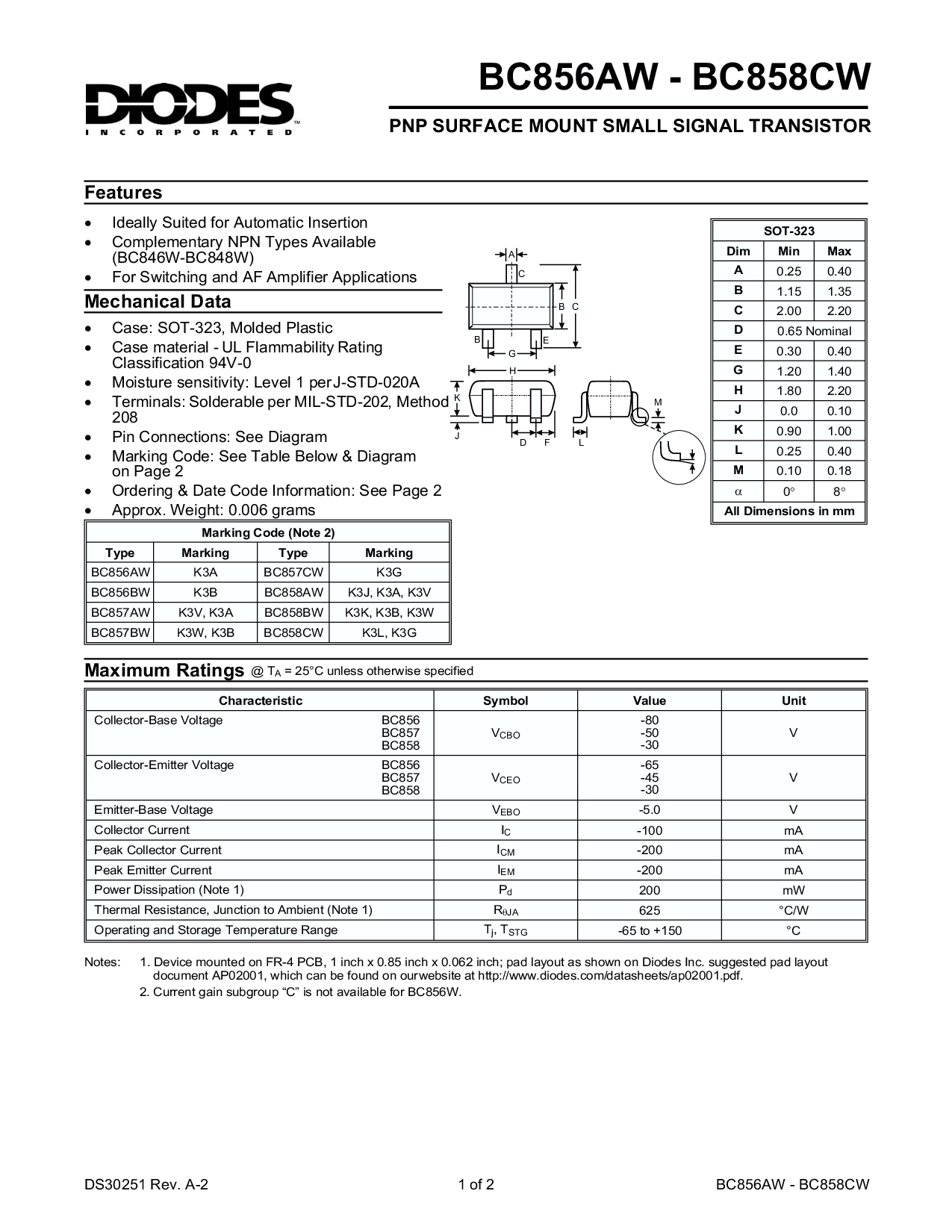 BC856BW K3B BC858AW k3j, k3a, k3v