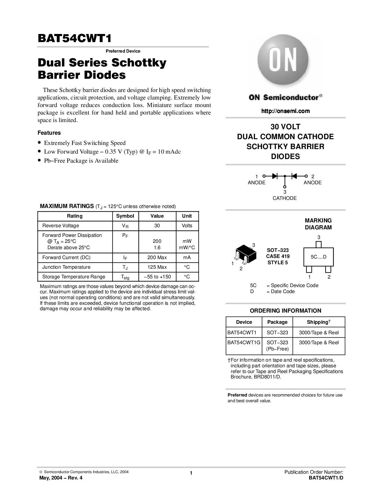 浏览型号BAT54CWT1G的Datasheet PDF文件第4页