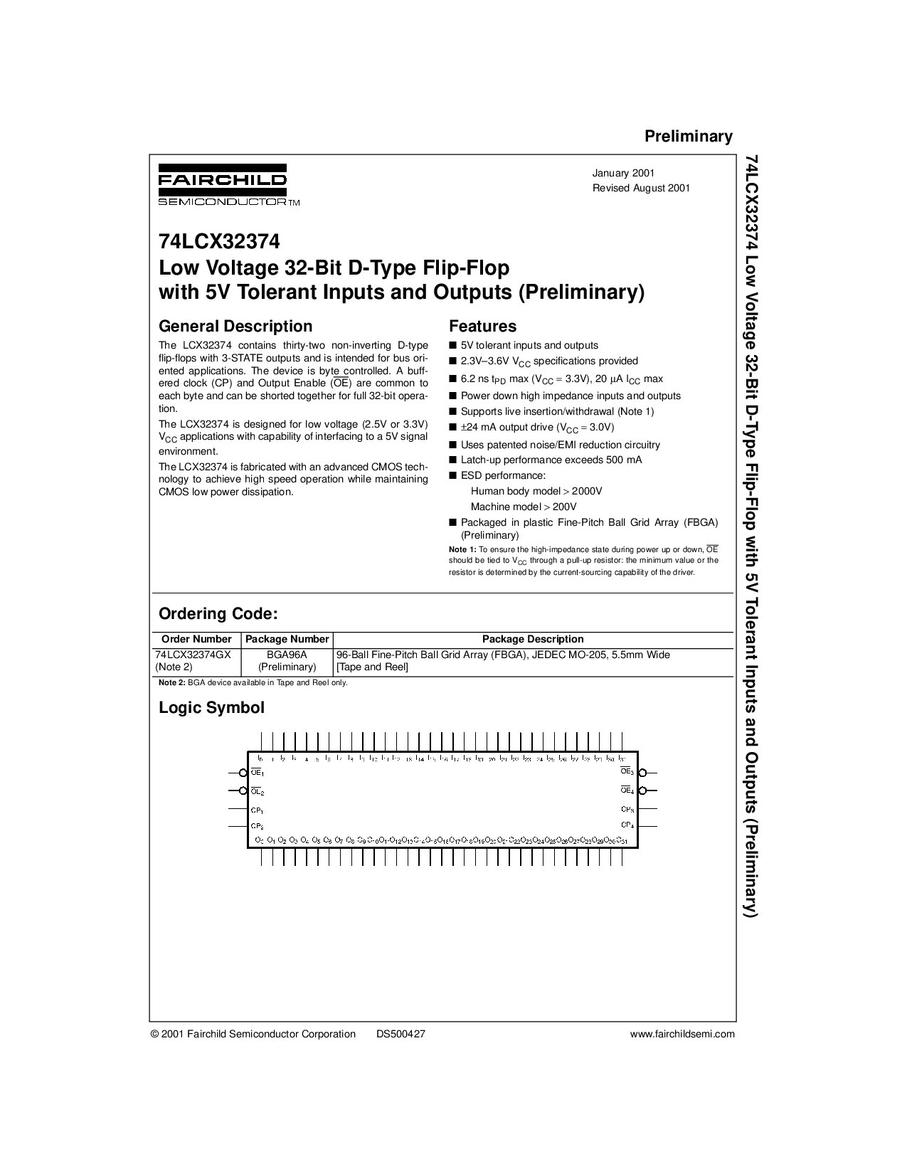 74lcx32374 低 电压 32-有点 d-类型 触发器 与 5v 宽容 输入 和 产出 (初步)