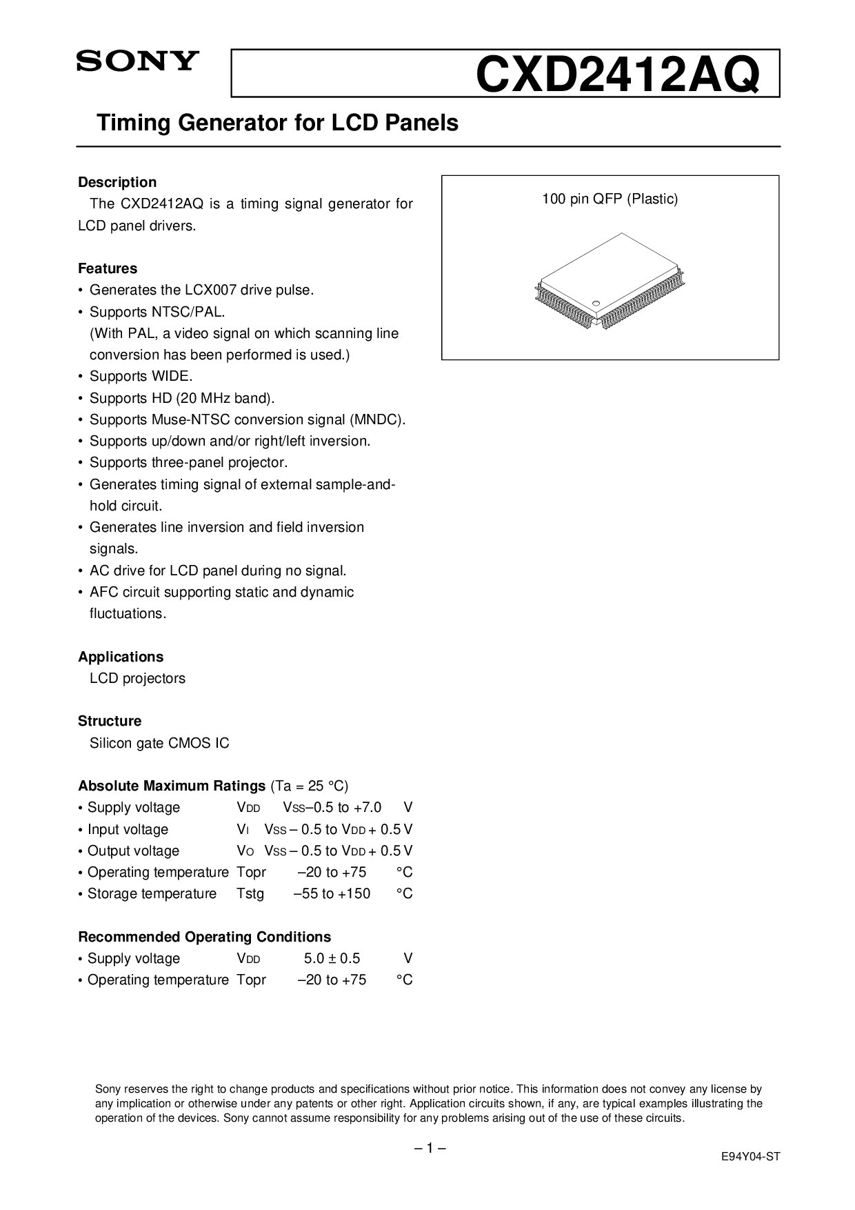 这 cxd2412aq 是 一个 计时 信号 发电机 用于