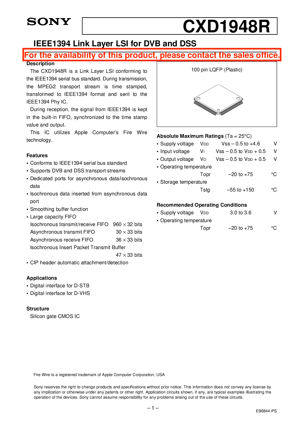 这 cxd1948r 是 一个 链接 图层 lsi 符合 至