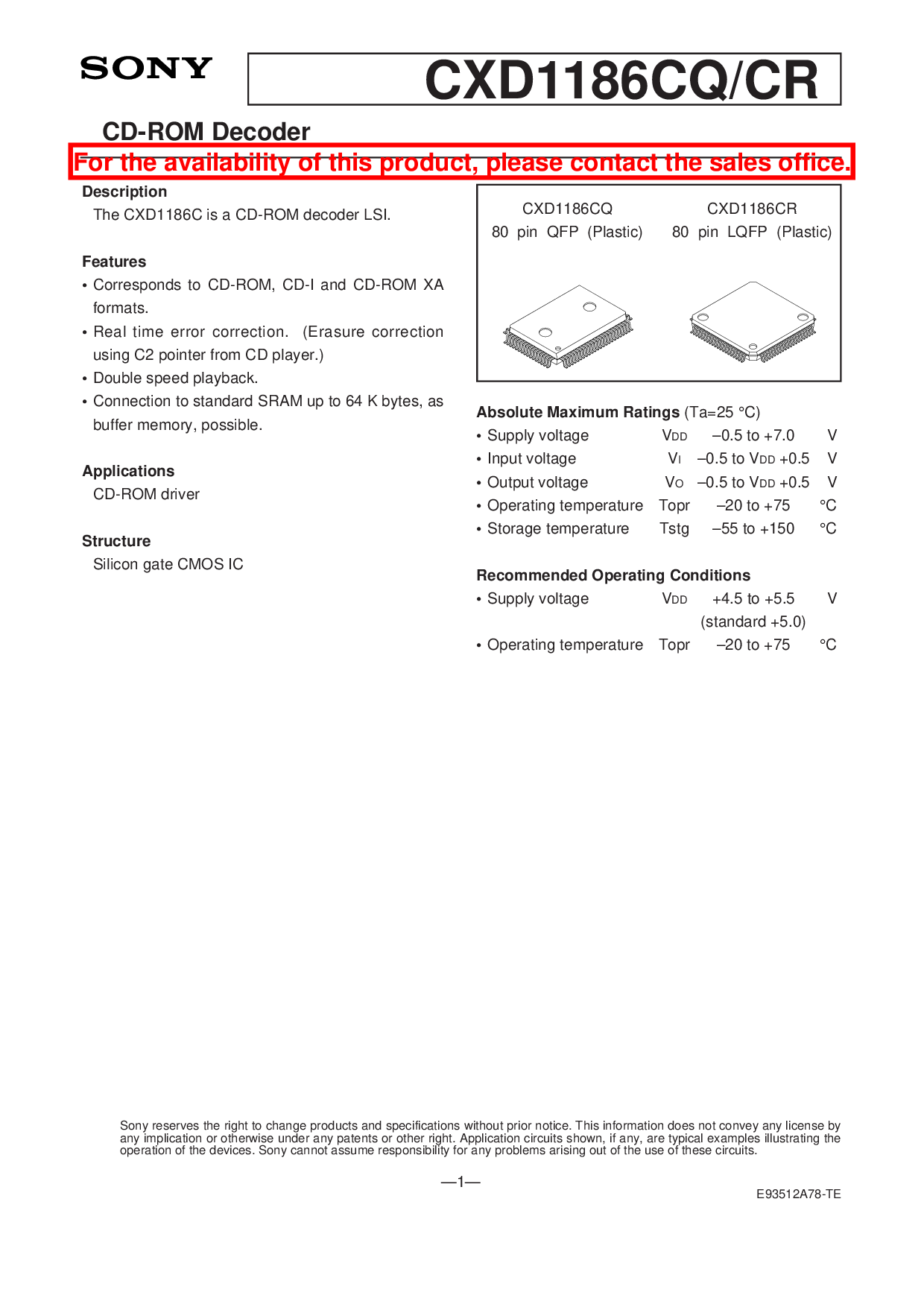 CXD1186CQ CXD1186CR