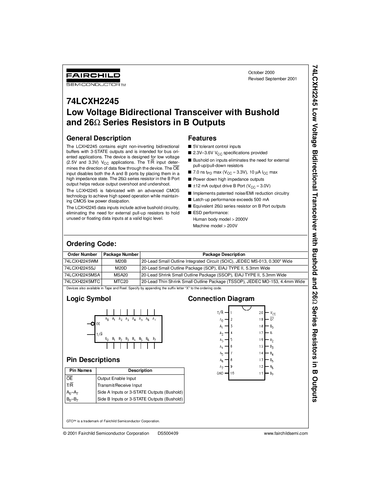 浏览型号74LCXH2245的Datasheet PDF文件第2页