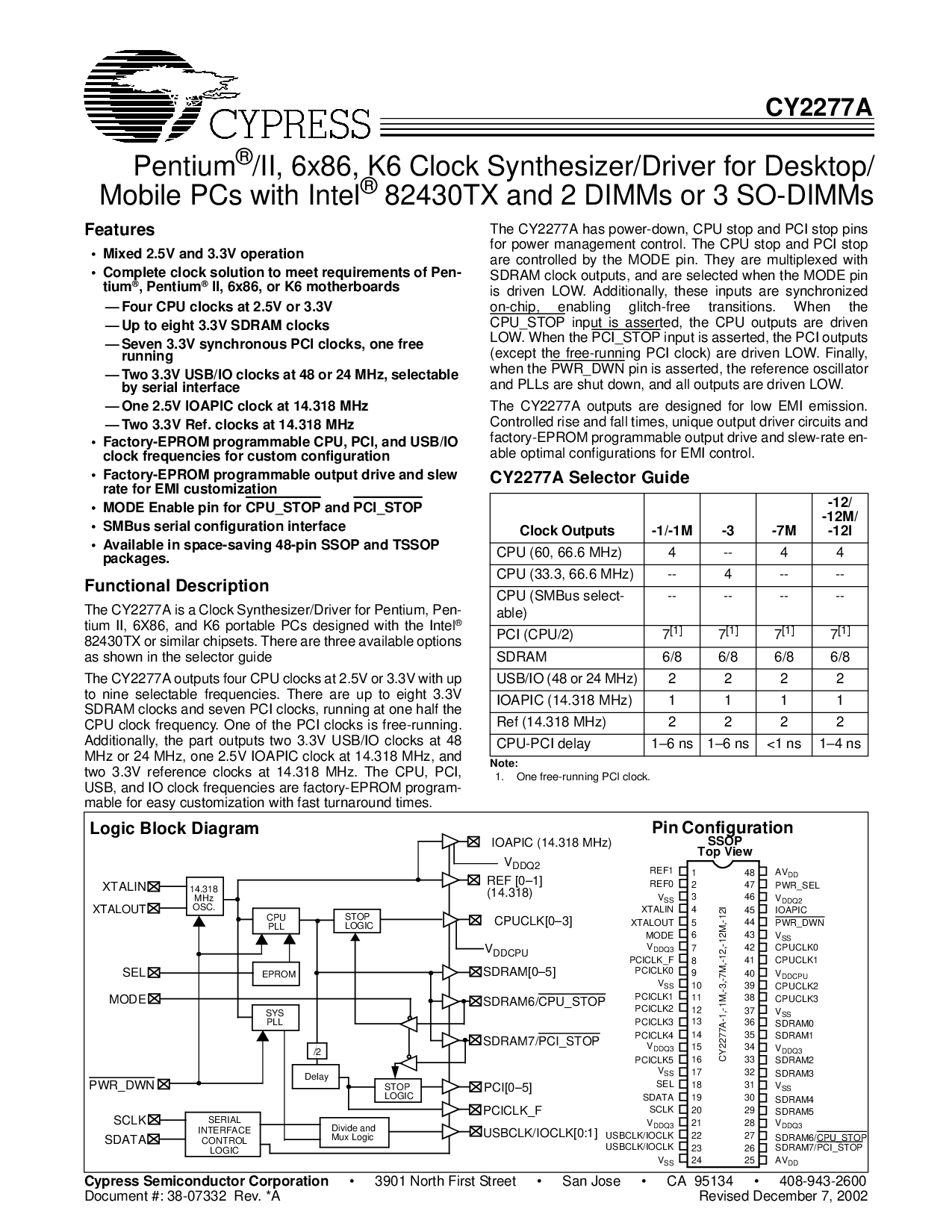 这 cy2277a 是 一个 时钟 合成器/驾驶员 用于 pentium, 钢笔-