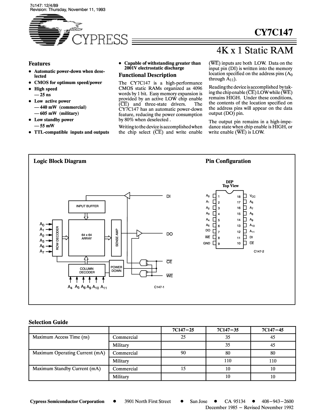 12月 1985 - 修订 十一月 1992