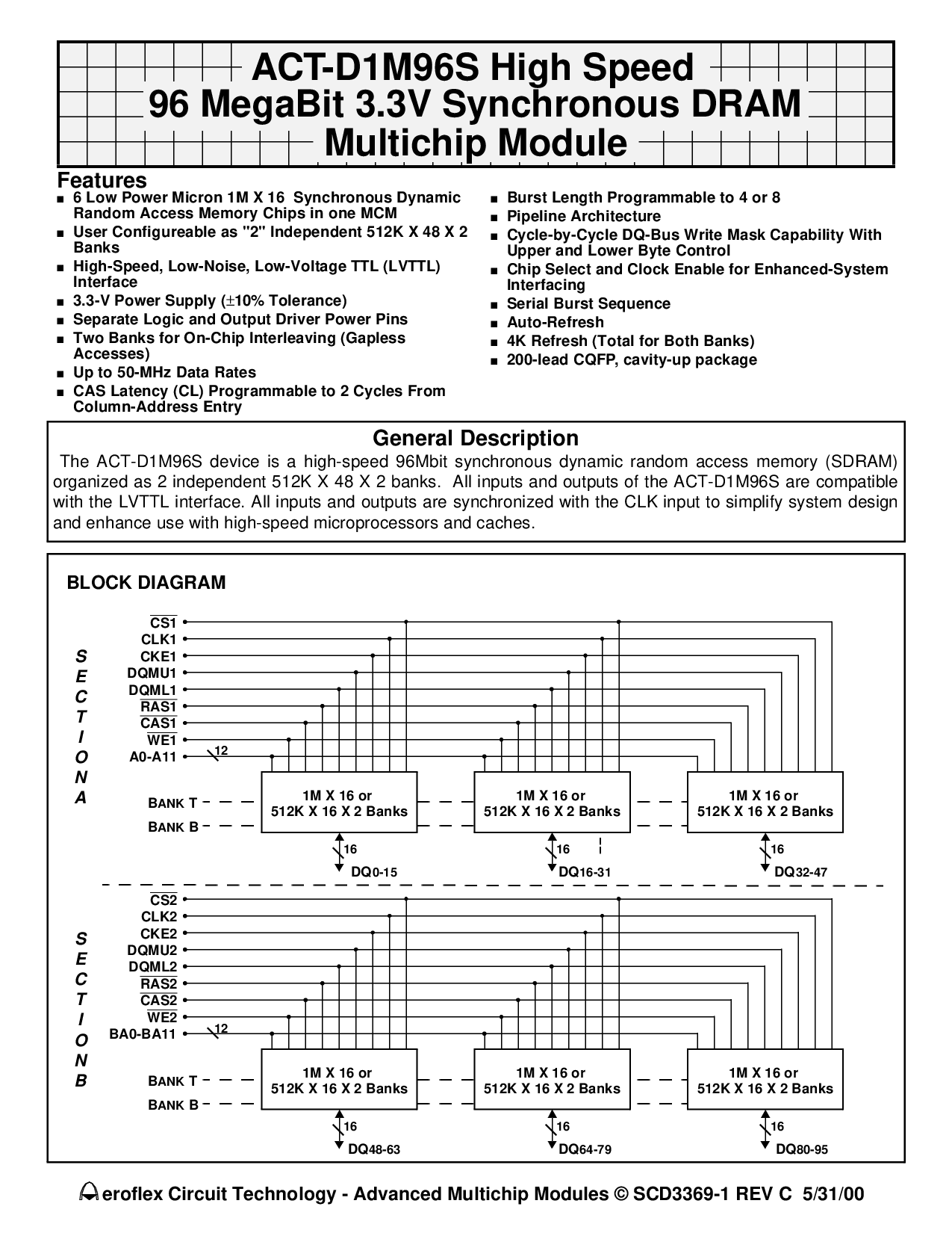 有组织的 作为 2 独立 512k x 48 x 2 银行. 全部 输入 和 产出 的 这 act-d1m96s 是 兼容