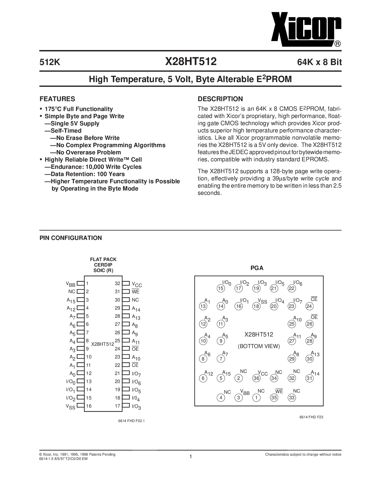 © xicor, 公司 1991, 1995, 1996 专利 待定 特性 主题 至 变更 无 通知
