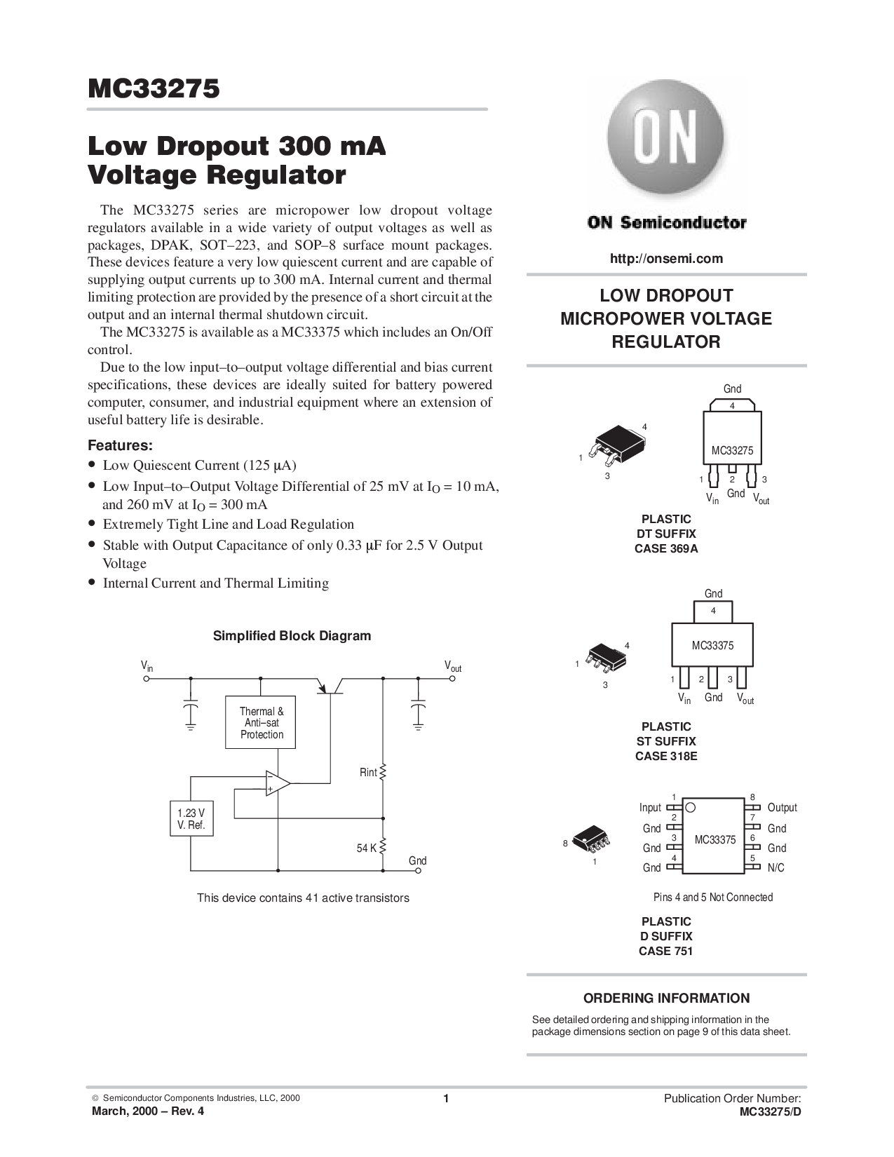这 mc33275 系列 是 微功率 低 辍学 电压