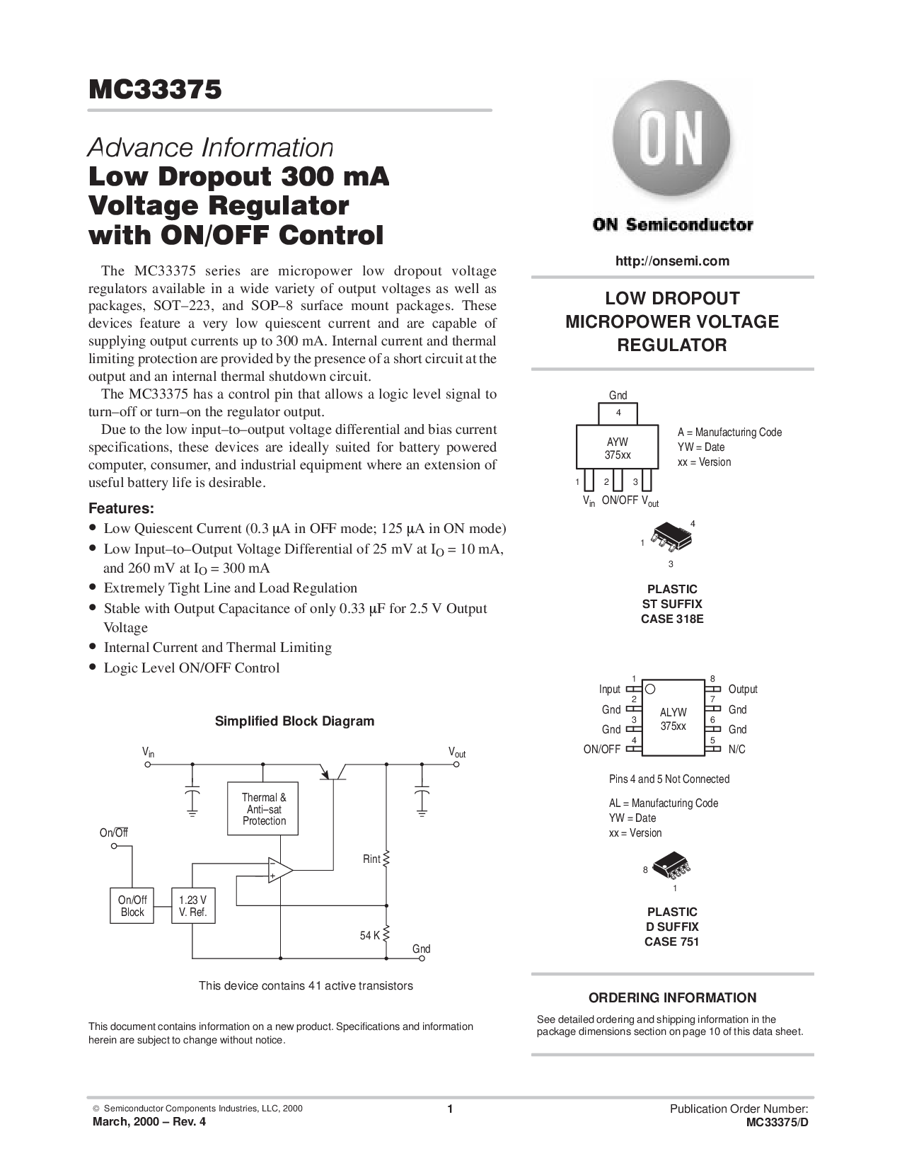 这 mc33375 系列 是 微功率 低 辍学 电压