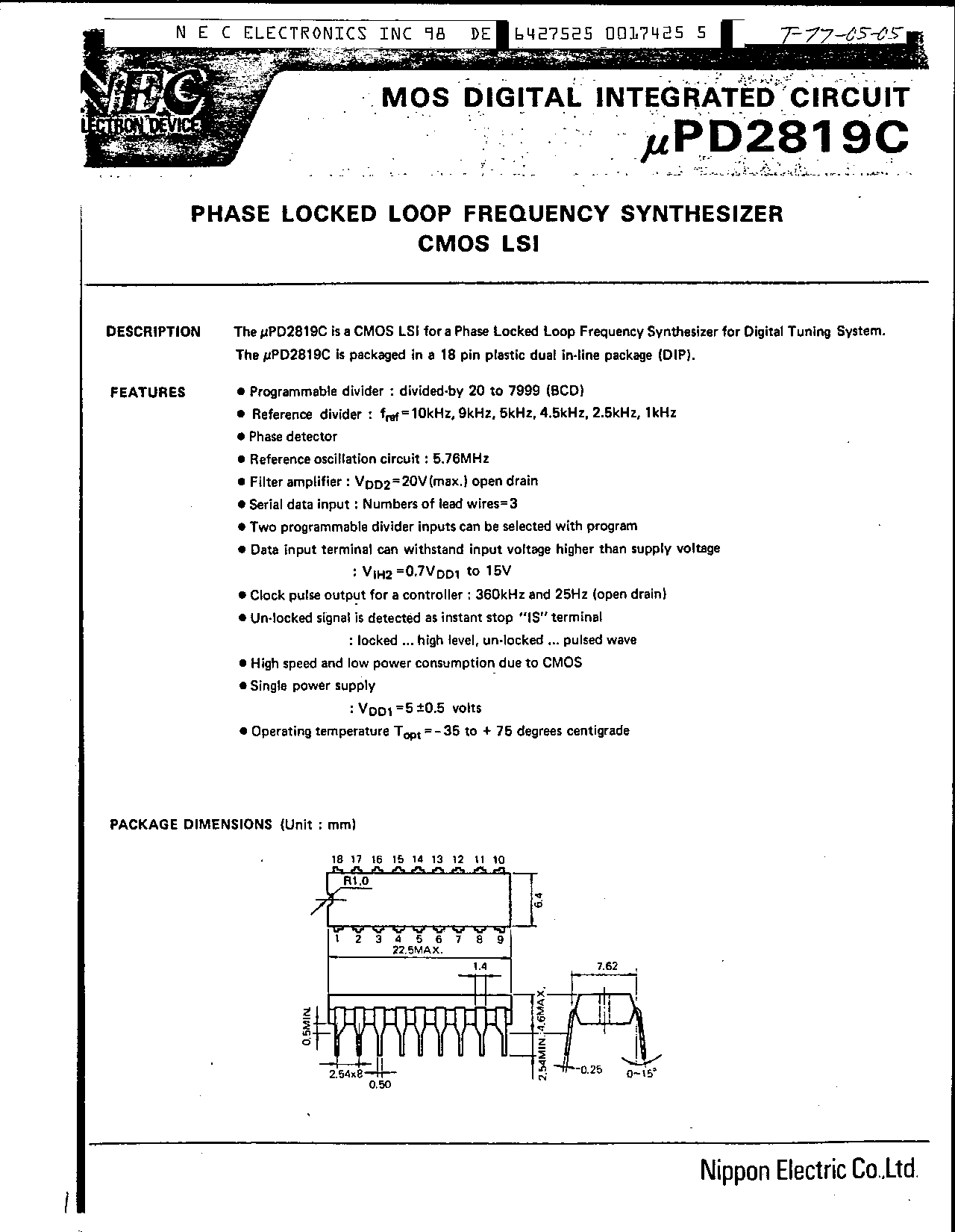 PHASE LOCKED LOOP FREQUENCY SYNTHESIZER CMOS LSI