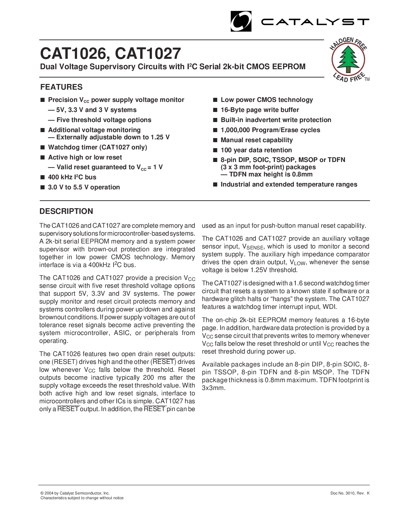 浏览型号CAT1027ZD4E-30TE13的Datasheet PDF文件第2页