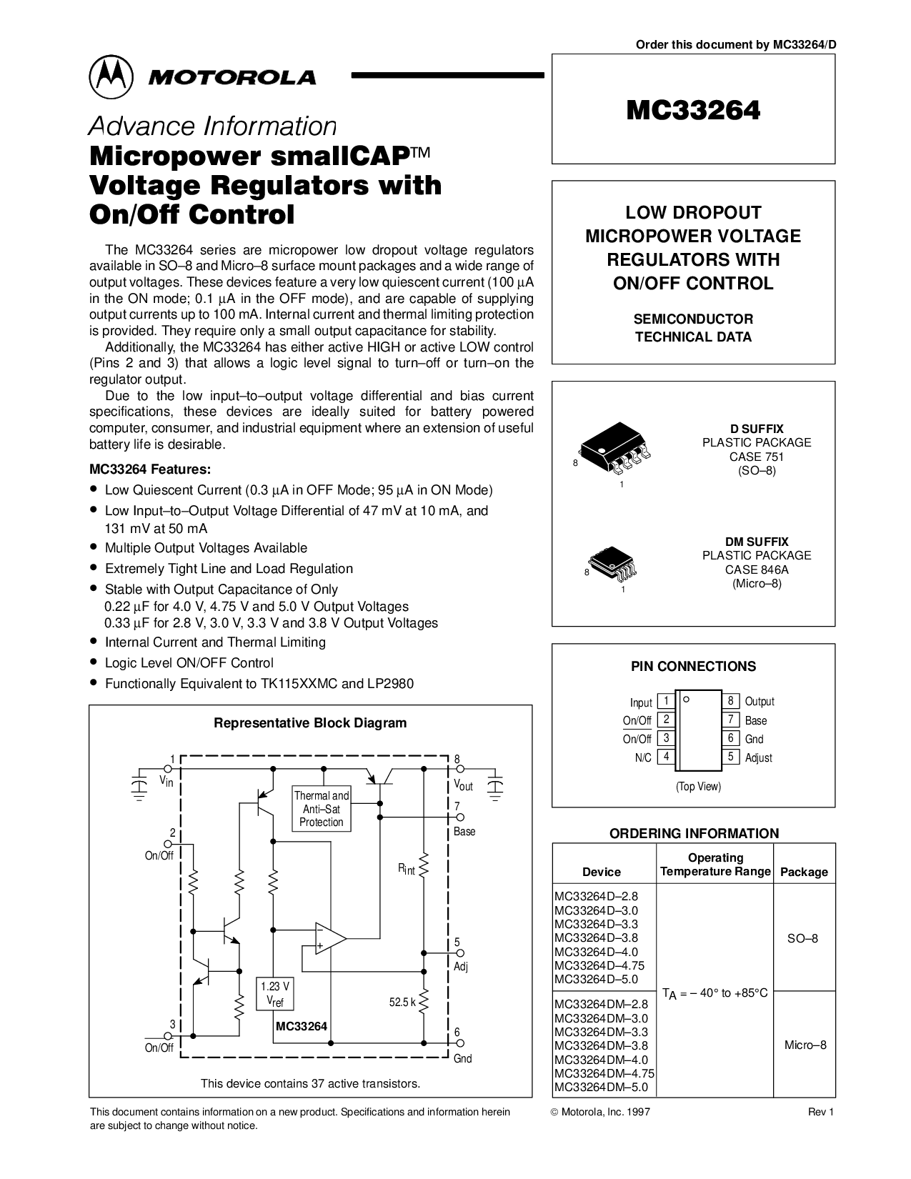 这 mc33264 系列 是 微功率 低 辍学 电压 调节器