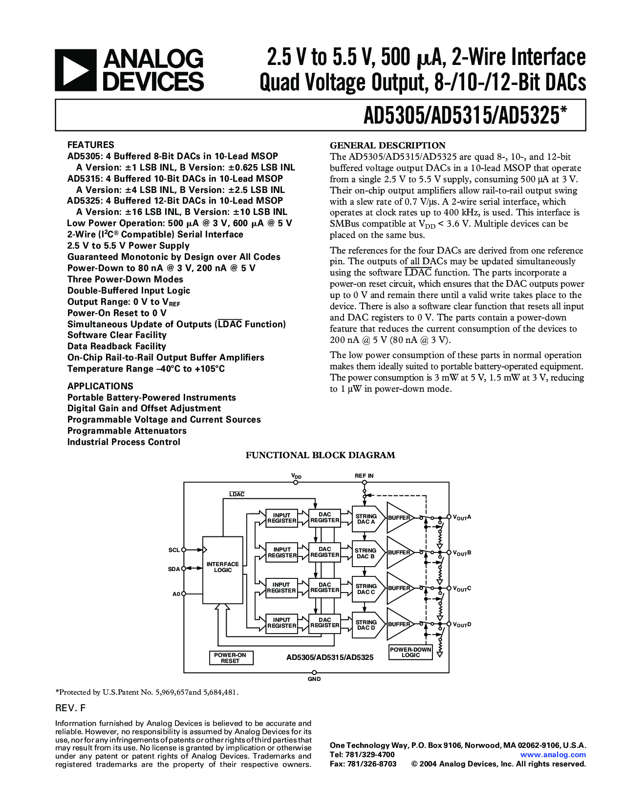 ad5305: 4 缓冲 8-有点 dacs 入点 10-铅 msop