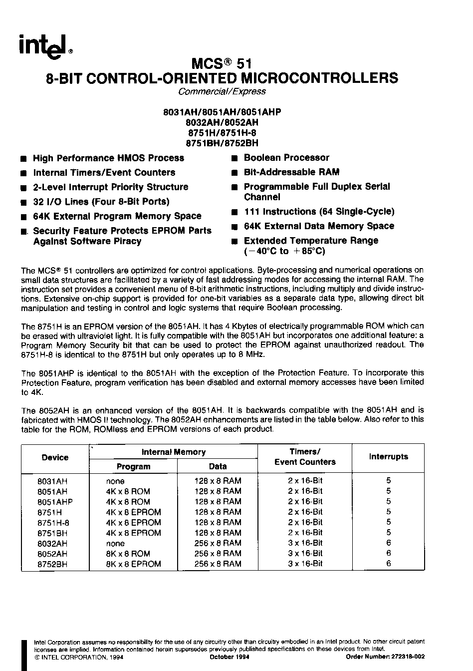 8 BIT CONTROL ORIENTED MICROCOMPUTERS